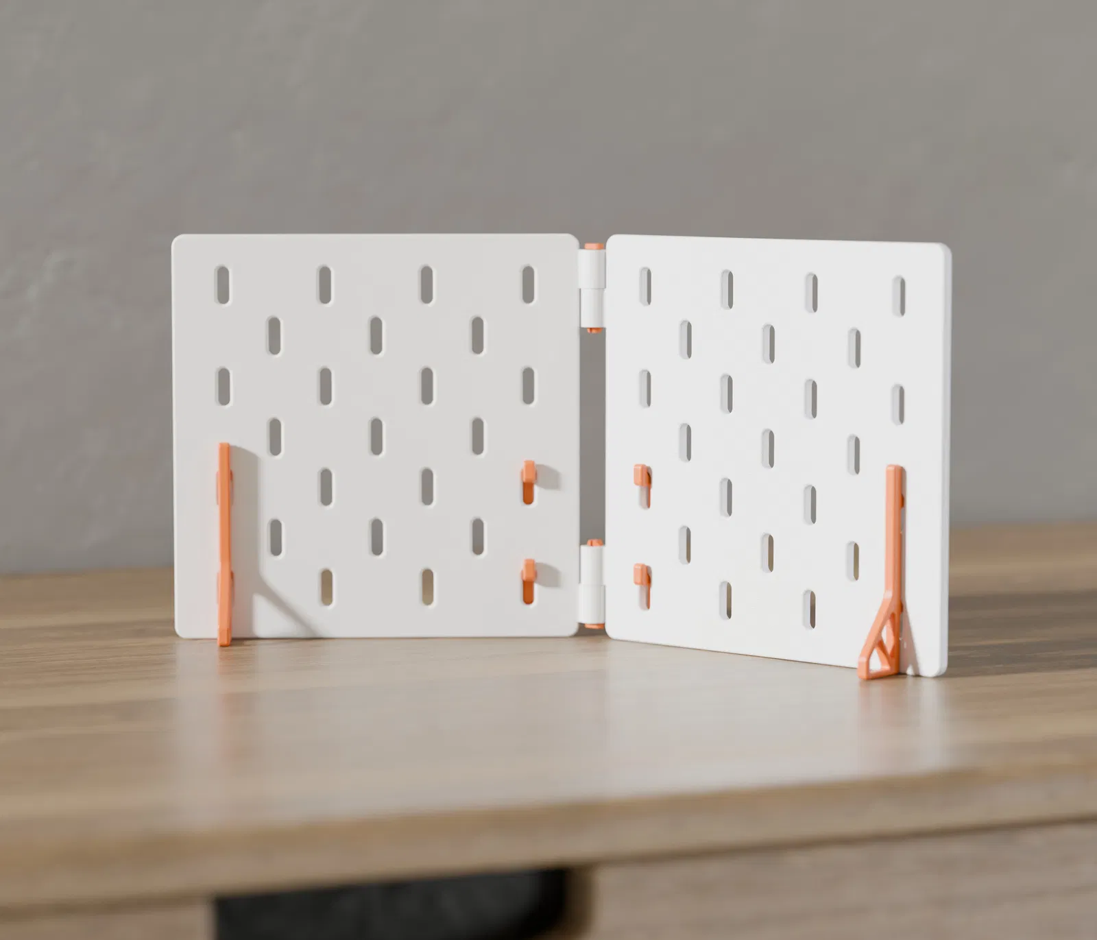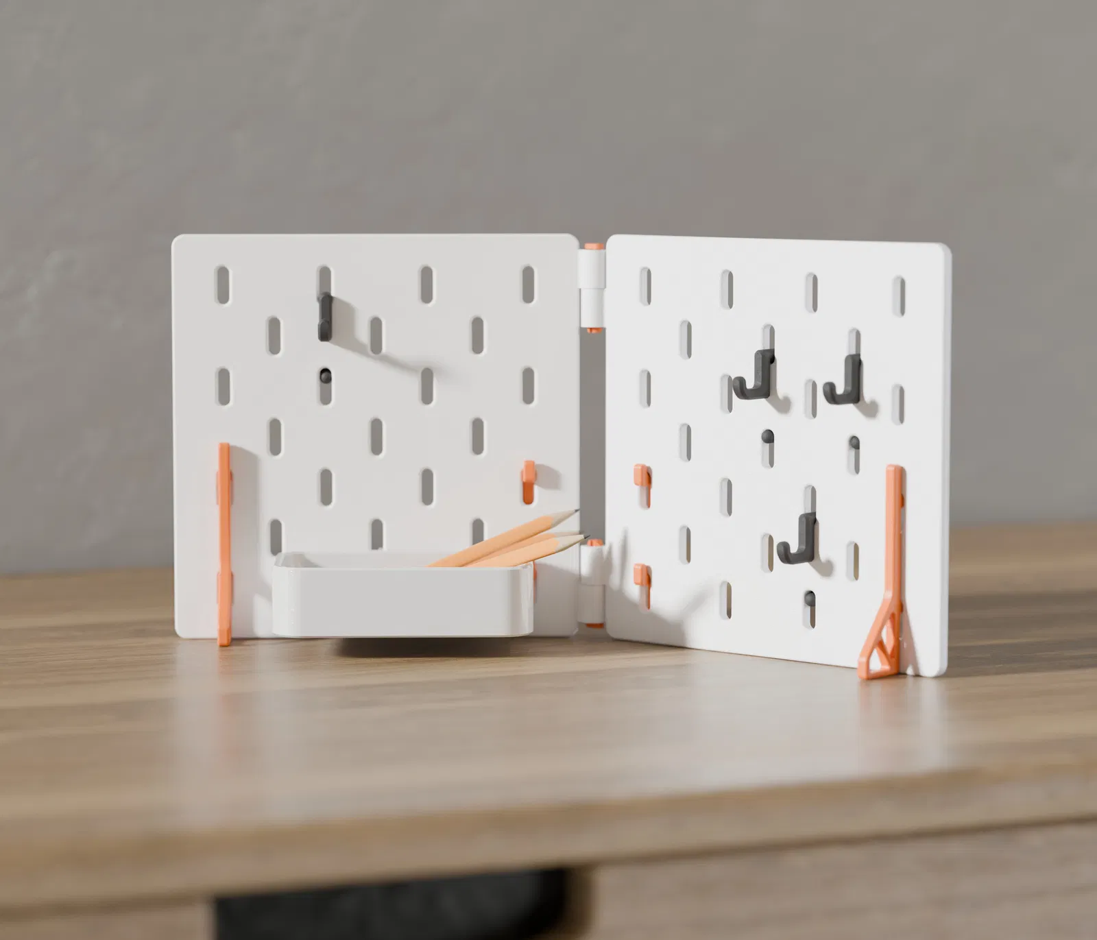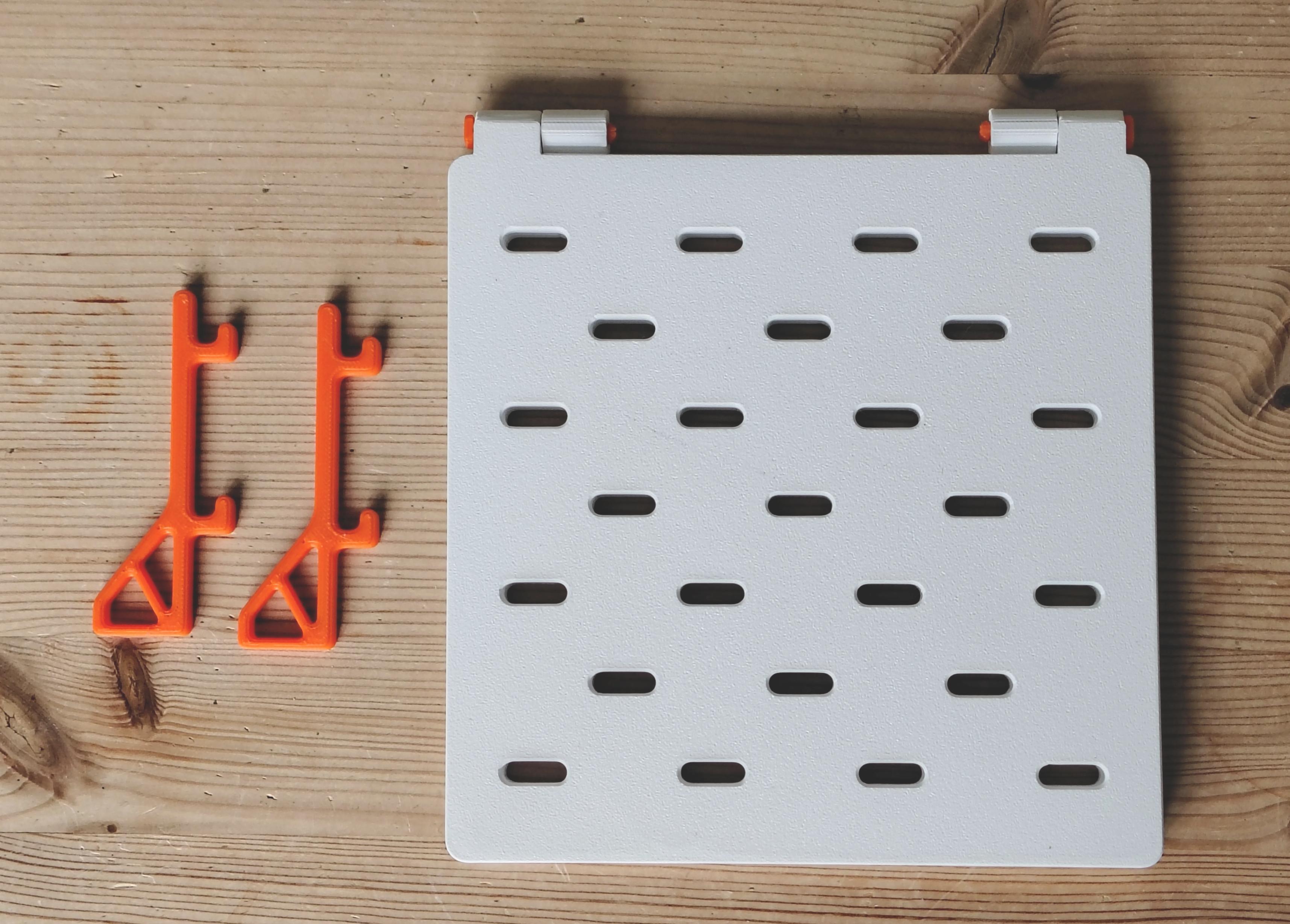 Phiên bản mini gấp gọn của SKADIS pegboard từ IKEA, lý tưởng để tạo không gian lưu trữ nhỏ gọn trên bàn làm việc, trường học hoặc văn phòng. Kích thước phù hợp với khay in Prusa Mini/AI Mini. Có thể ghép nối vô hạn và đi kèm hai loại chân đế cùng chốt kết nối.