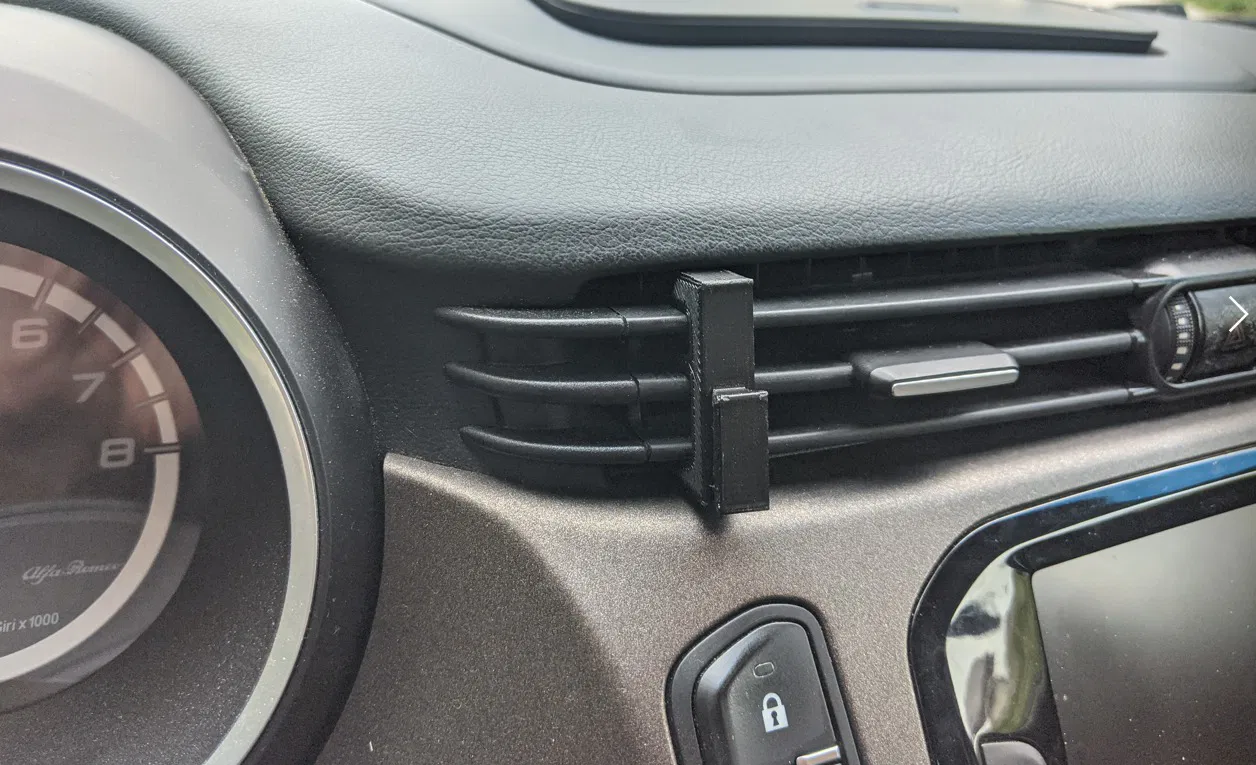 Đây là cái đế giữ điện thoại dành cho xe Alfa Romeo Giulietta. Thiết kế cho điện thoại có độ dày 12 mm và chiều rộng 74 mm.