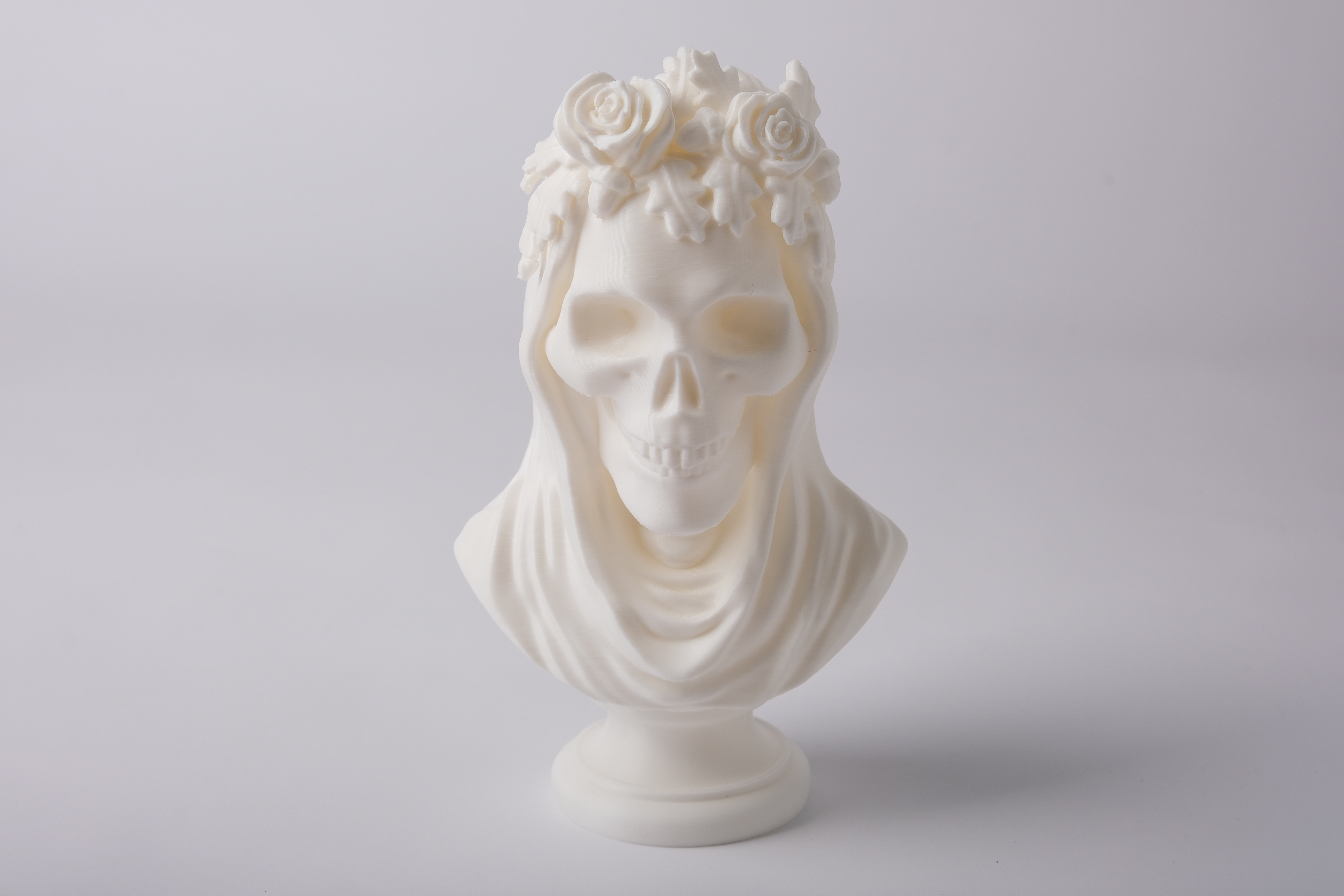 Tác phẩm "Autumn Skull in Veil" là một bức tượng bán thân in 3D đầy ám ảnh và thanh lịch, kết hợp giữa biểu tượng u tối với nghệ thuật tinh tế. Khoác lên mình tấm vải mềm mại và được tô điểm bởi hoa hồng cùng lá mùa thu, khuôn mặt bộ xương gợi lên cả sự phù du và vẻ đẹp. Hoàn hảo làm điểm nhấn nội thất Gothic, đồ trang trí Halloween theo mùa, hoặc một tác phẩm nghệ thuật sưu tầm, bức tượng này thêm vào không gian của bạn một nét kịch tính và bí ẩn.