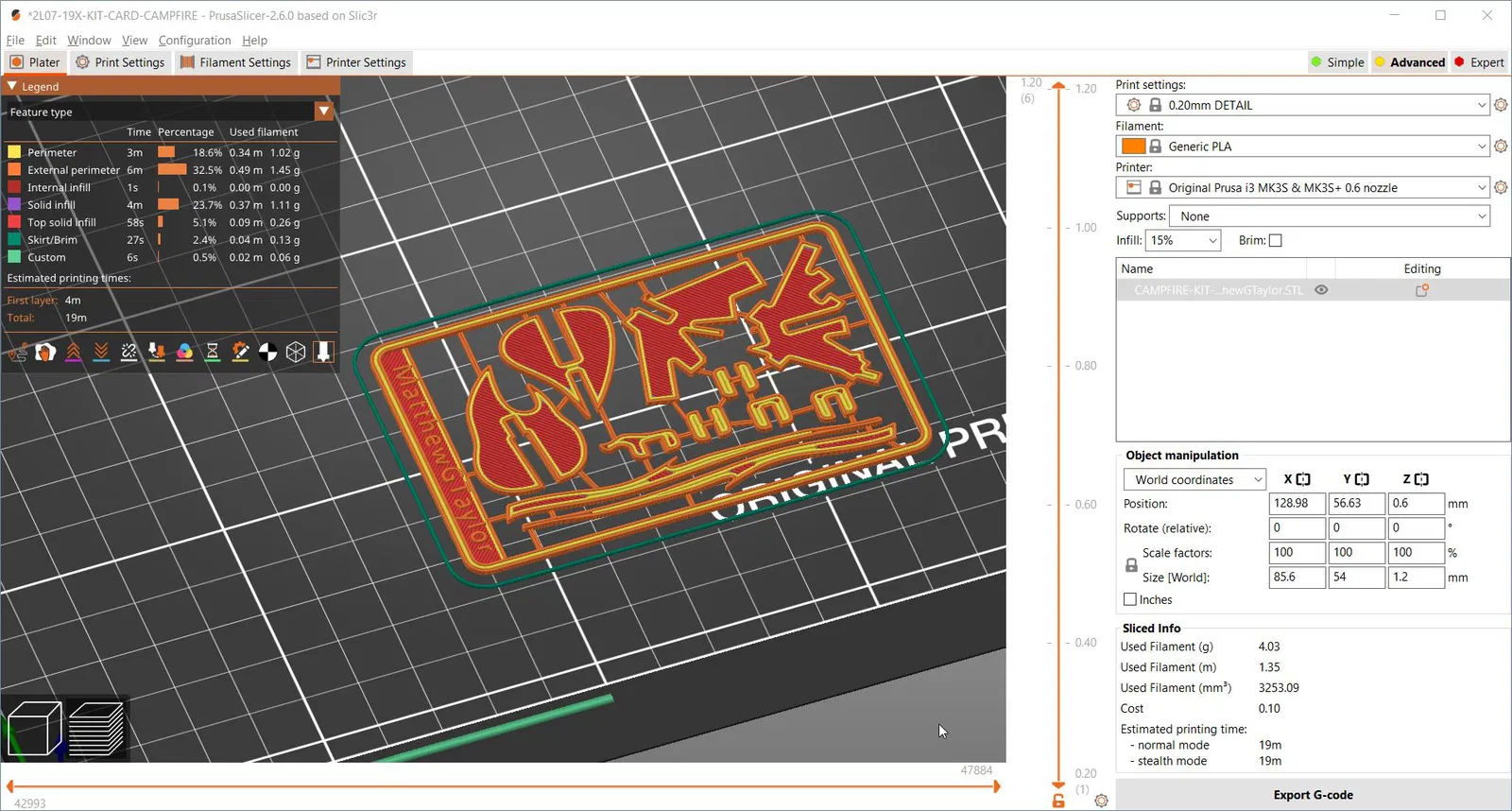 Khuyến nghị in | Chất liệu PLA, độ dày lớp 0.2mm, mật độ ruột 100%. Thẻ dày 1.2mm.