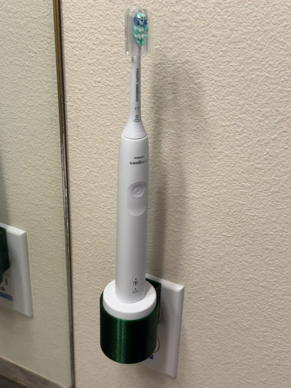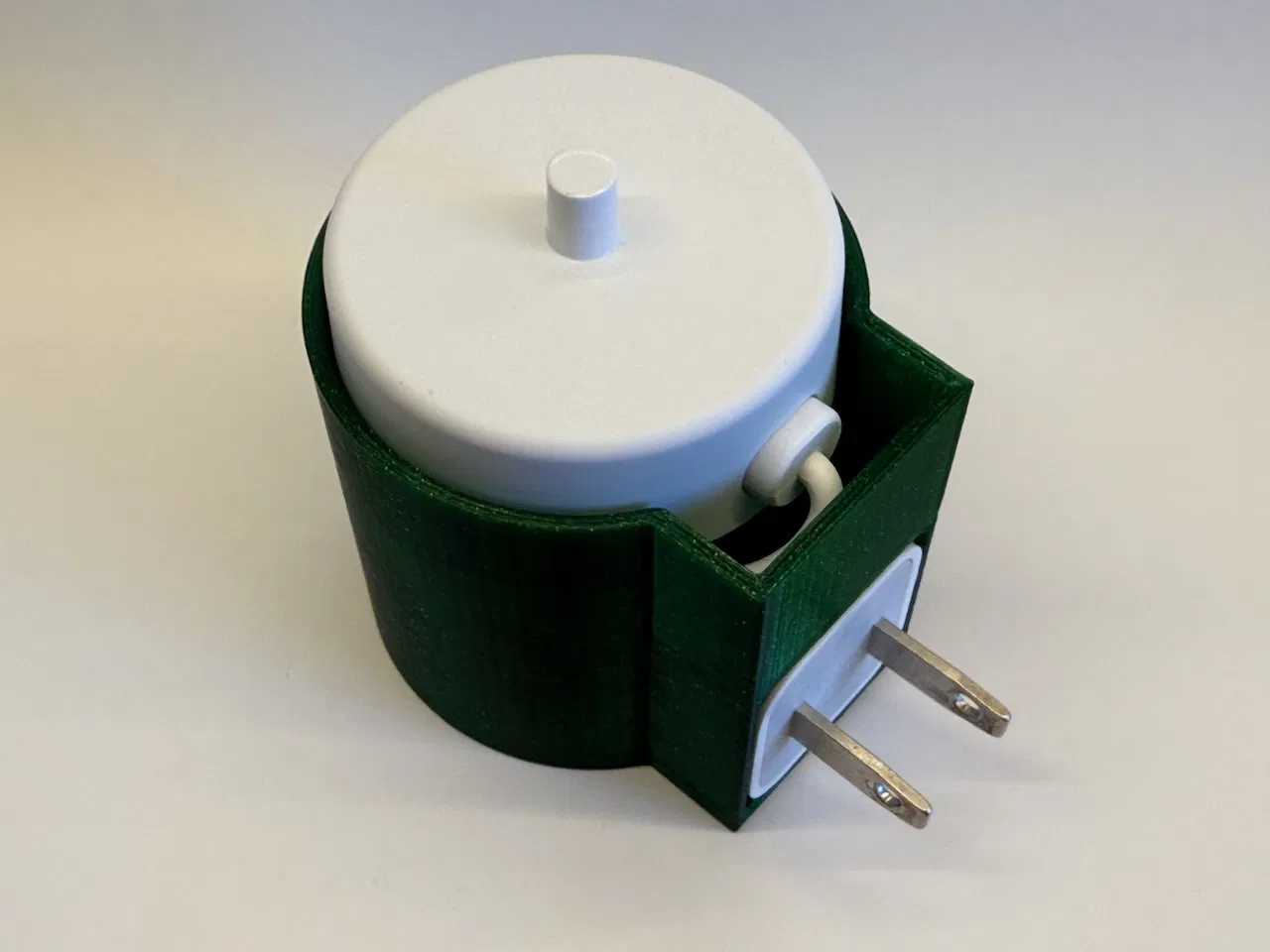Cái đế này để gắn sạc Sonicare và adapter nguồn, cắm thẳng vô ổ điện luôn. Dùng được cho sạc Sonicare HX6110 và adapter USB 5W của Apple (A1385). Có kèm file .step và Fusion360 để bạn tự chỉnh lại cho adapter của mình. Mẫu này in bằng Prusament PLA Galaxy Green nha bạn.