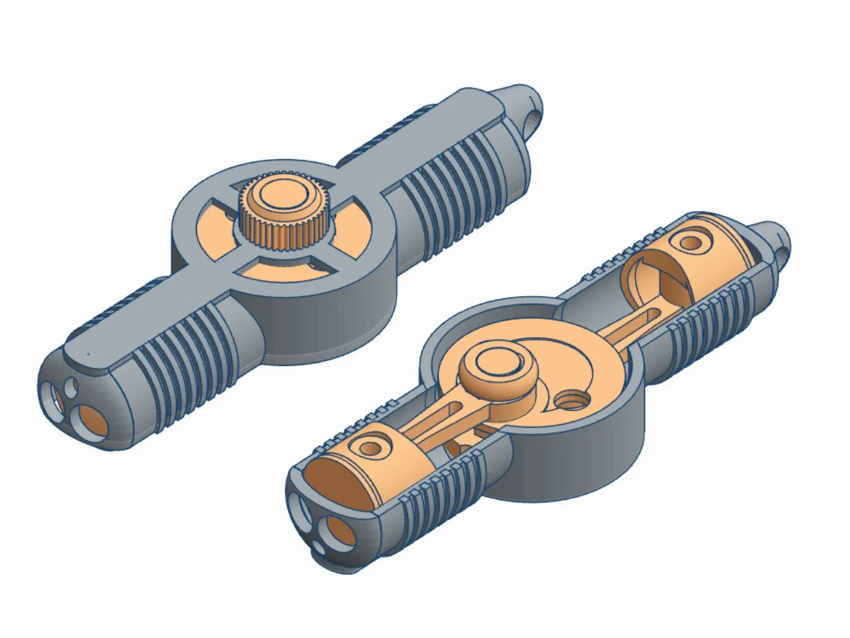 Móc khóa động cơ Boxer với trục khuỷu quay và piston chuyển động. Thiết kế này có piston di chuyển vào ra cùng lúc, giống động cơ BMW. In bằng PLA+, không cần support. Lắp ráp dễ dàng với hướng dẫn chi tiết và mẹo nhỏ để hoạt động trơn tru.