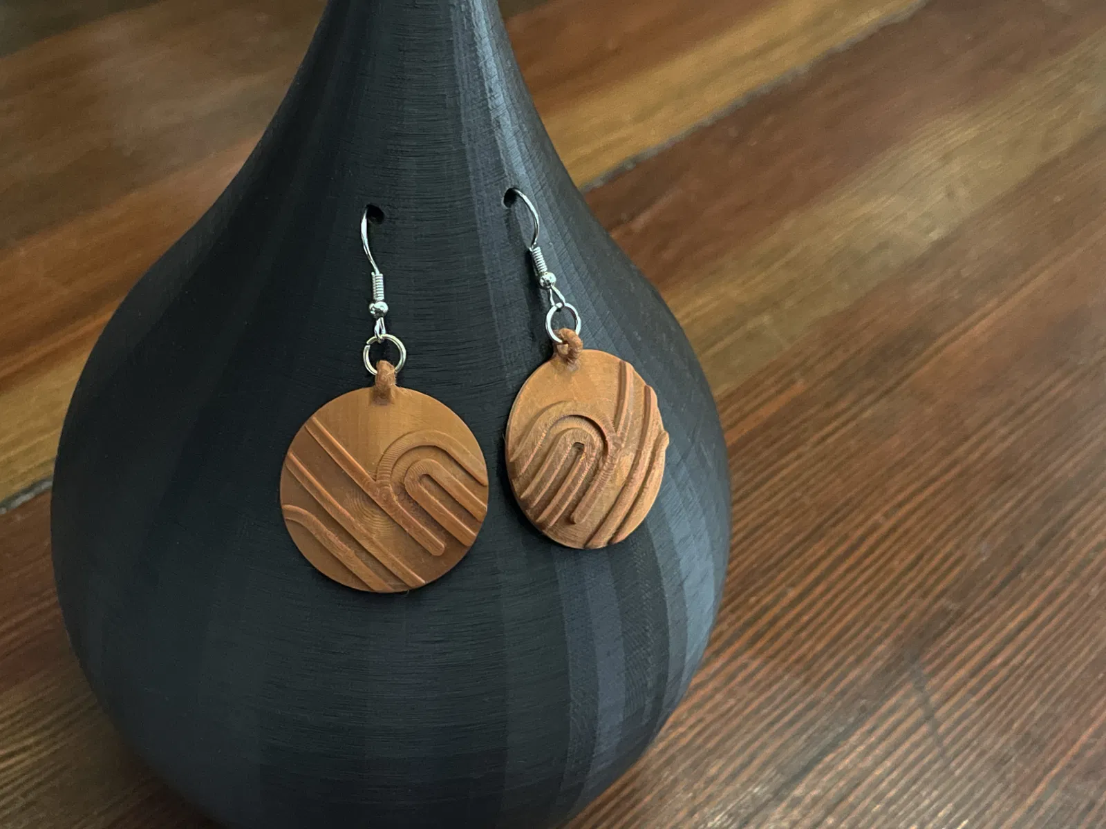 Bông tai hình tròn với hoa văn nổi. Mỗi chiếc chỉ nặng dưới 2.5g, rất hợp cho lỗ tai nhạy cảm. Khuyến nghị in với nozzle 0.25mm và không cần support. Kích thước: cao 58mm, đường kính đĩa 29mm.