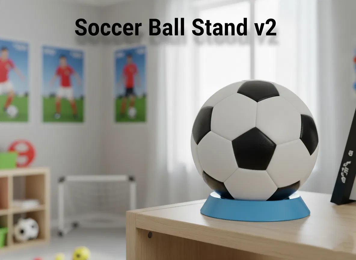Chân đế bóng đá đơn giản nhưng hiệu quả. Phiên bản v2 được cải tiến về kích thước cho vừa vặn hơn và tăng cường độ ổn định. Không cần sử dụng supports khi in.