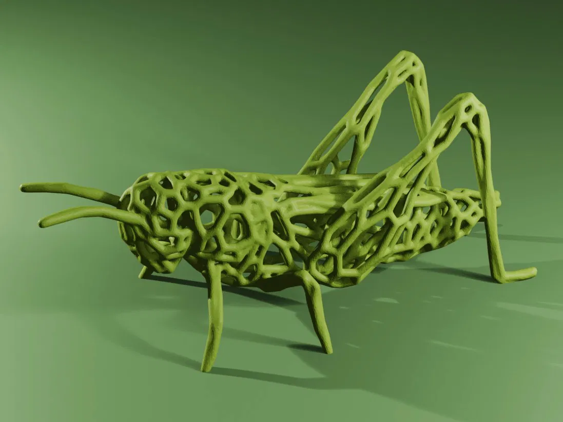 Một con châu chấu/dế mèn được thiết kế theo phong cách Voronoi độc đáo. Thích hợp để in các mô hình trang trí hoặc đồ chơi.