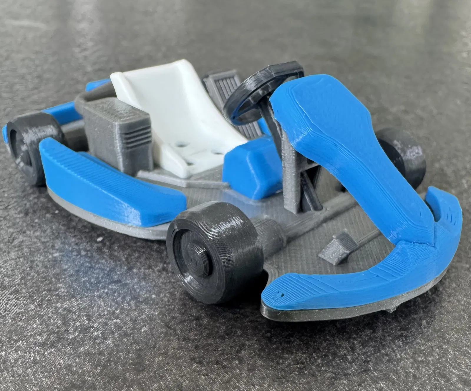 Kit card xe Go Kart, một mô hình thu nhỏ chân thực của chiếc xe đua. Bạn có thể in các bộ phận riêng lẻ với nhiều màu sắc khác nhau và tự tay lắp ráp lại. Mô hình này không cần support khi in và rất phù hợp để làm đồ chơi hoặc vật trang trí.