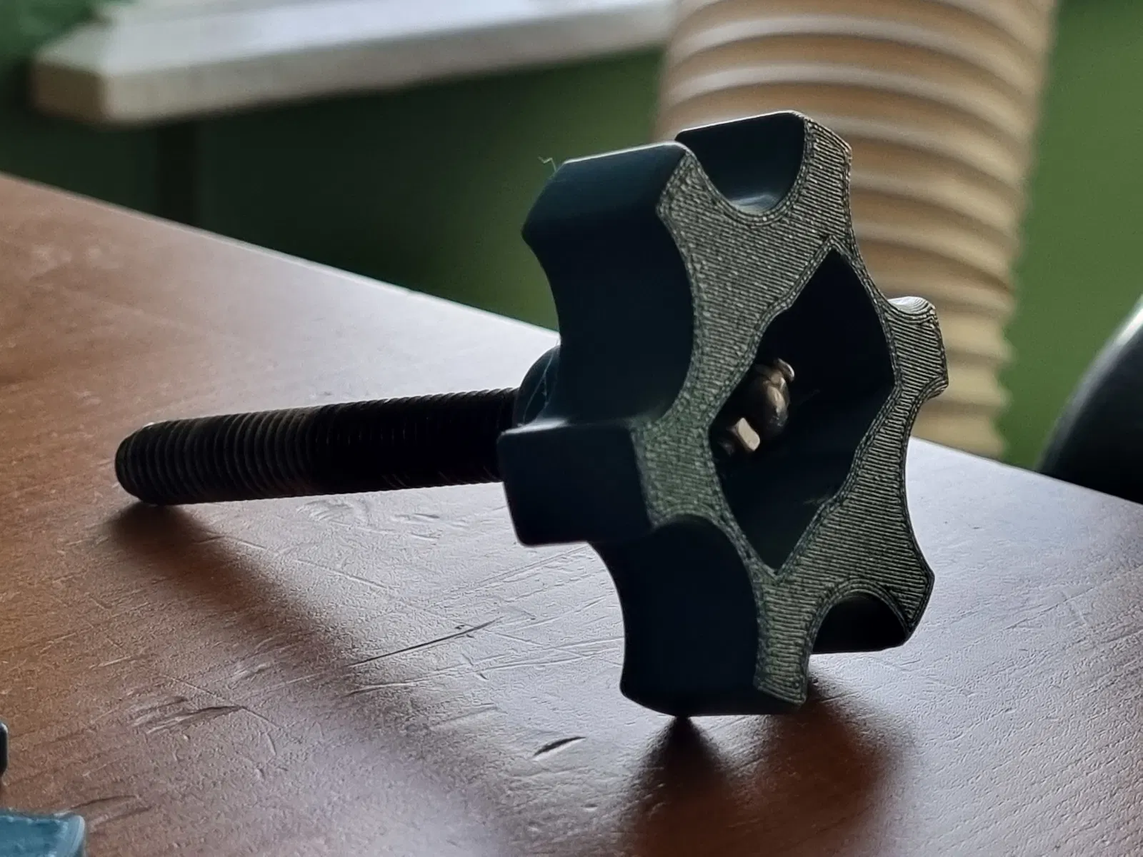 Nhớ dùng một con ốc và đai ốc M3 nhỏ để gắn núm vặn cho chắc ăn nha.