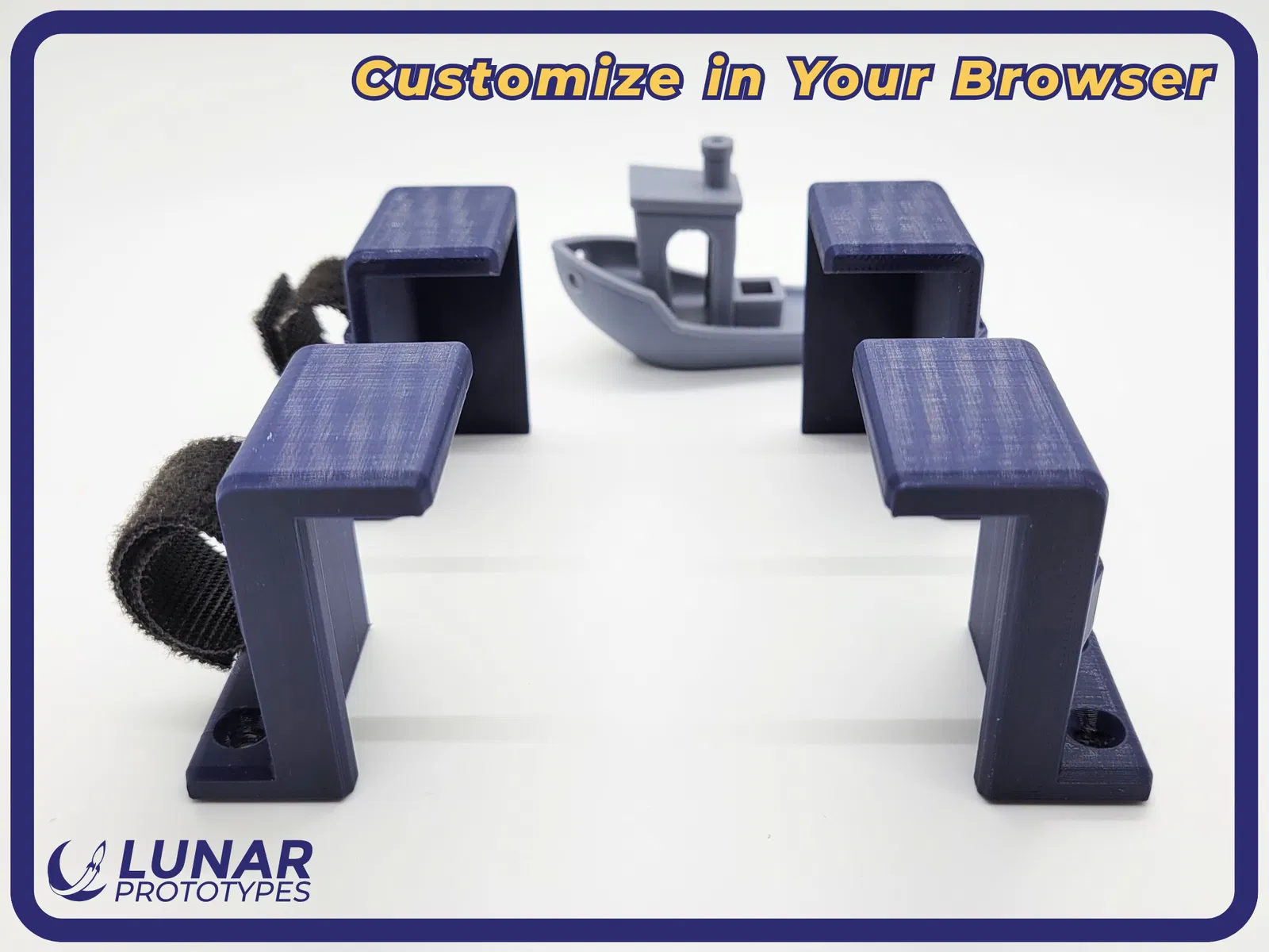 Giá đỡ hình khối lập phương tùy chỉnh với vòng Velcro, lý tưởng để gắn công tắc, bộ nguồn hoặc dưới bàn làm việc. Điều chỉnh kích thước, chiều cao, khoảng hở và hơn thế nữa ngay trên trình duyệt của bạn. In STL nhanh chóng mà không cần phần mềm CAD hay slicer.
