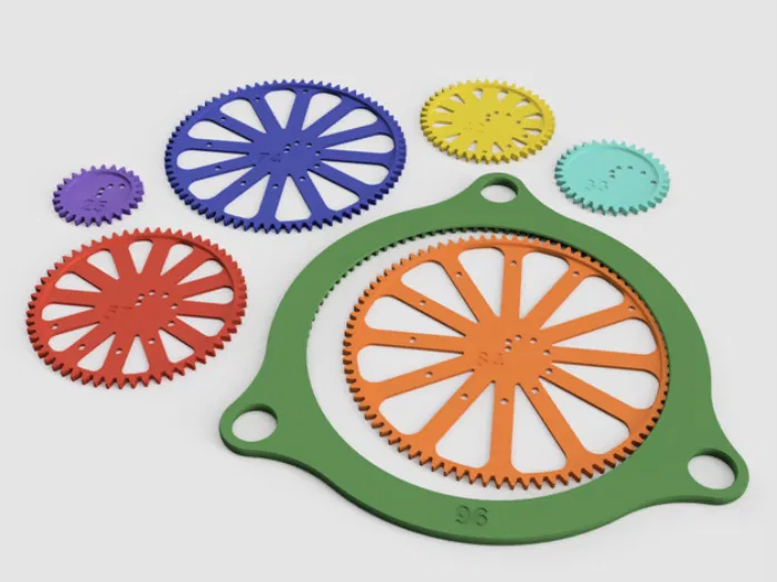 Tỷ lệ bánh răng được chọn với sự trợ giúp của trang web này: https://seedcode.com/SpirographN/sgn.html