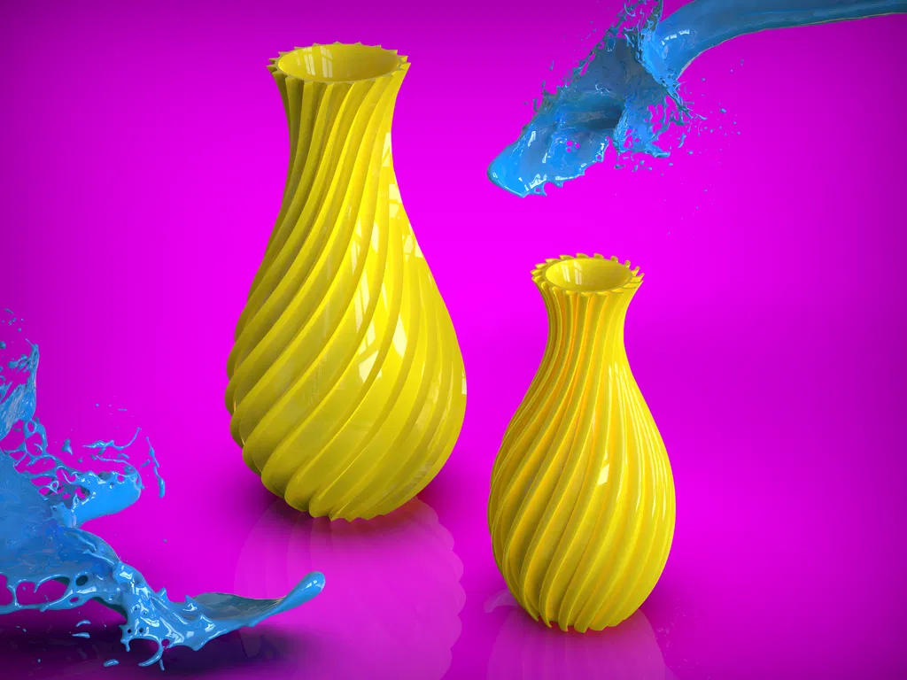 Hai mẫu bình đơn giản, một cái có thiết kế gân xoắn cong và một cái có thiết kế gân tam giác xoắn. Cả hai bình có kích thước khác nhau, nên bạn cứ scale theo ý thích nha.
