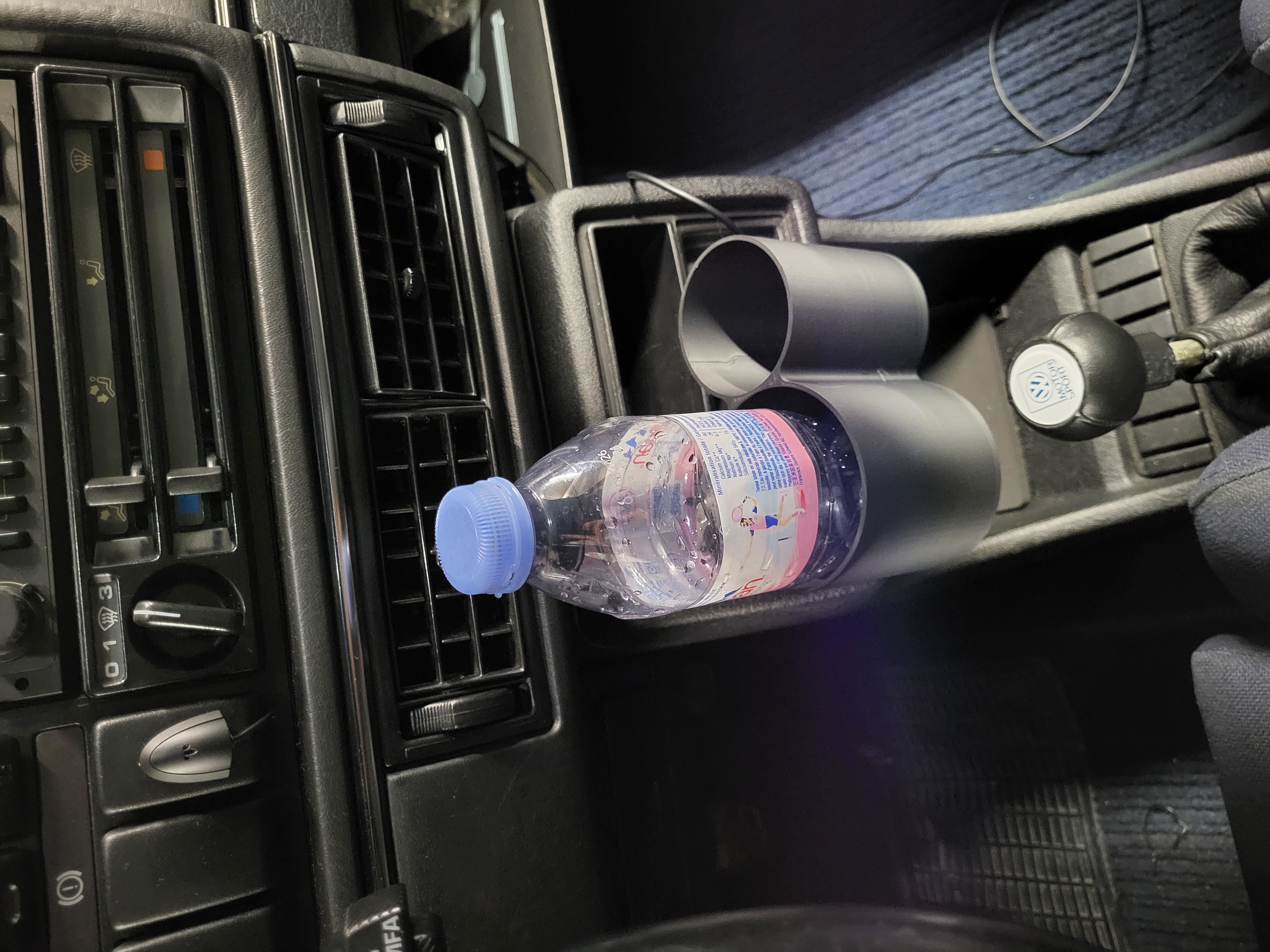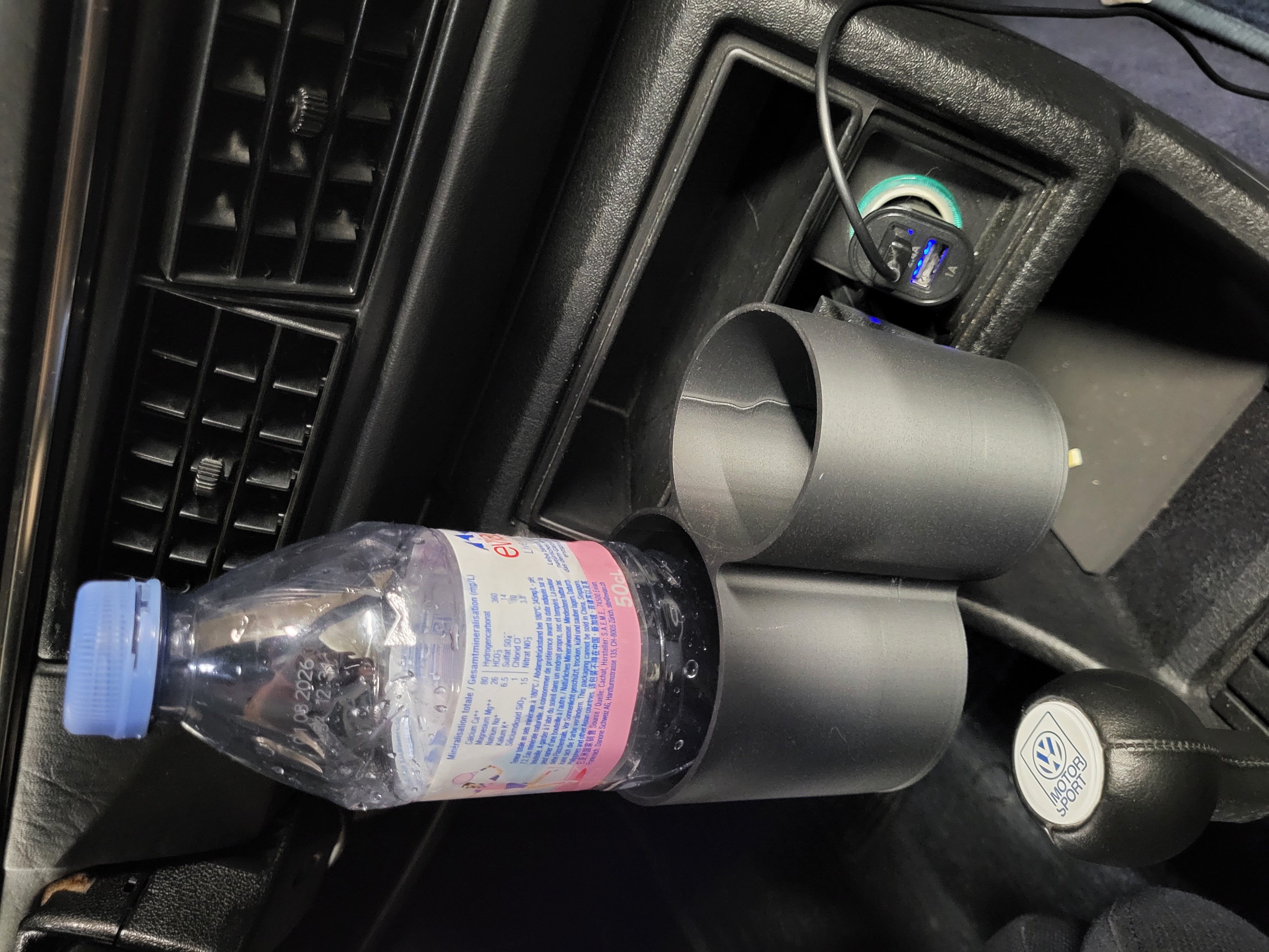 Giá đỡ nước uống thay thế gạt tàn zin cho VW Golf 2 / Mk.2 / Jetta 2. Lắp đặt dễ dàng, không cấn sang số, vẫn xài được ổ cắm 12V. In 2 mảnh cho đẹp, cần 4 vít M5x12 và keo để lắp ráp.