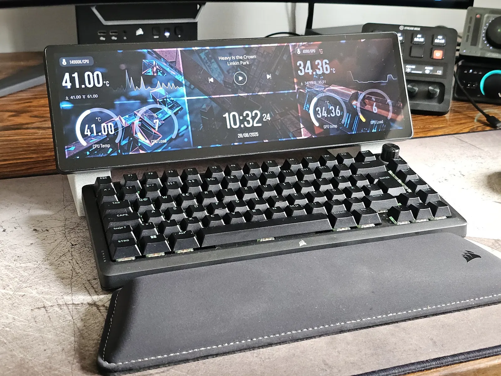 Cái đế này sẽ nâng màn hình XENEON EDGE lên phía trên bàn phím của bạn để việc sử dụng chức năng màn hình cảm ứng nhanh chóng và dễ dàng hơn.
