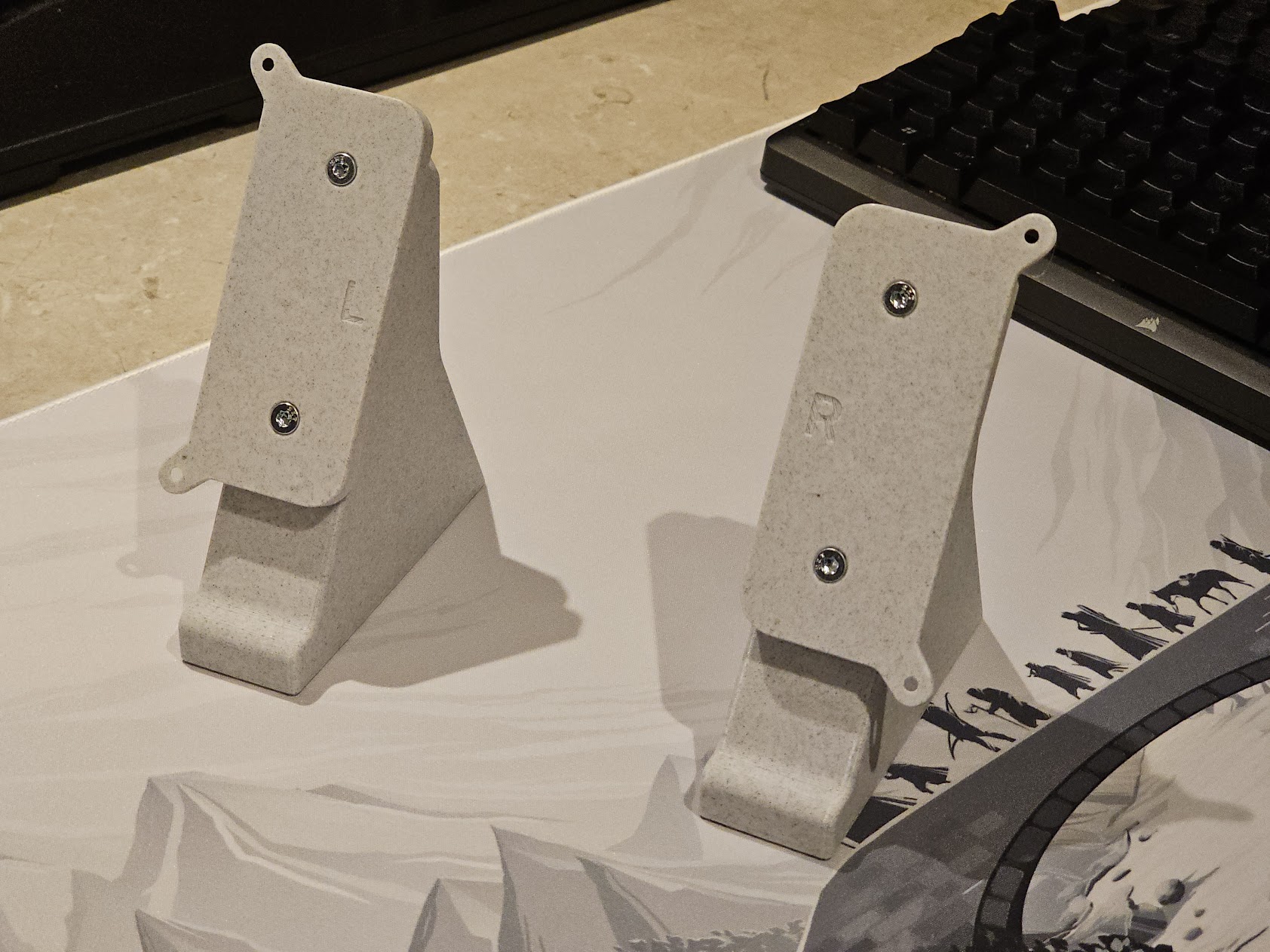 Chân đế nâng màn hình Xeneon Edge lên khỏi bàn phím, giúp sử dụng màn hình cảm ứng tiện lợi hơn. Đế có lỗ đổ cát tăng trọng lượng và dùng vít M4. Có sẵn lỗ tùy chỉnh phía sau.