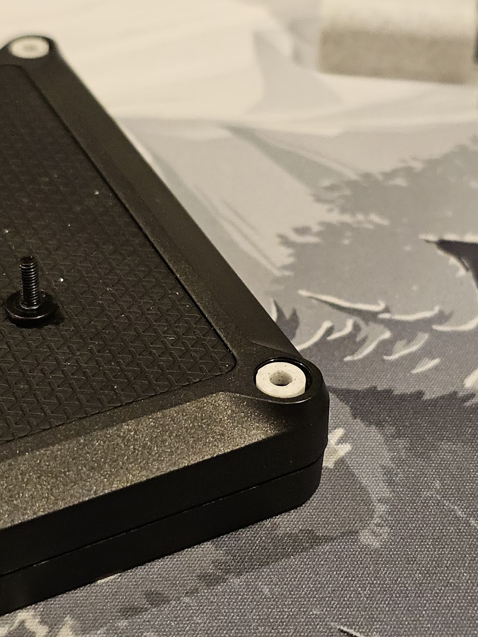 Tháo bốn bu lông ở các góc của màn hình Xeneon Edge và đặt một miếng đệm vào mỗi lỗ.