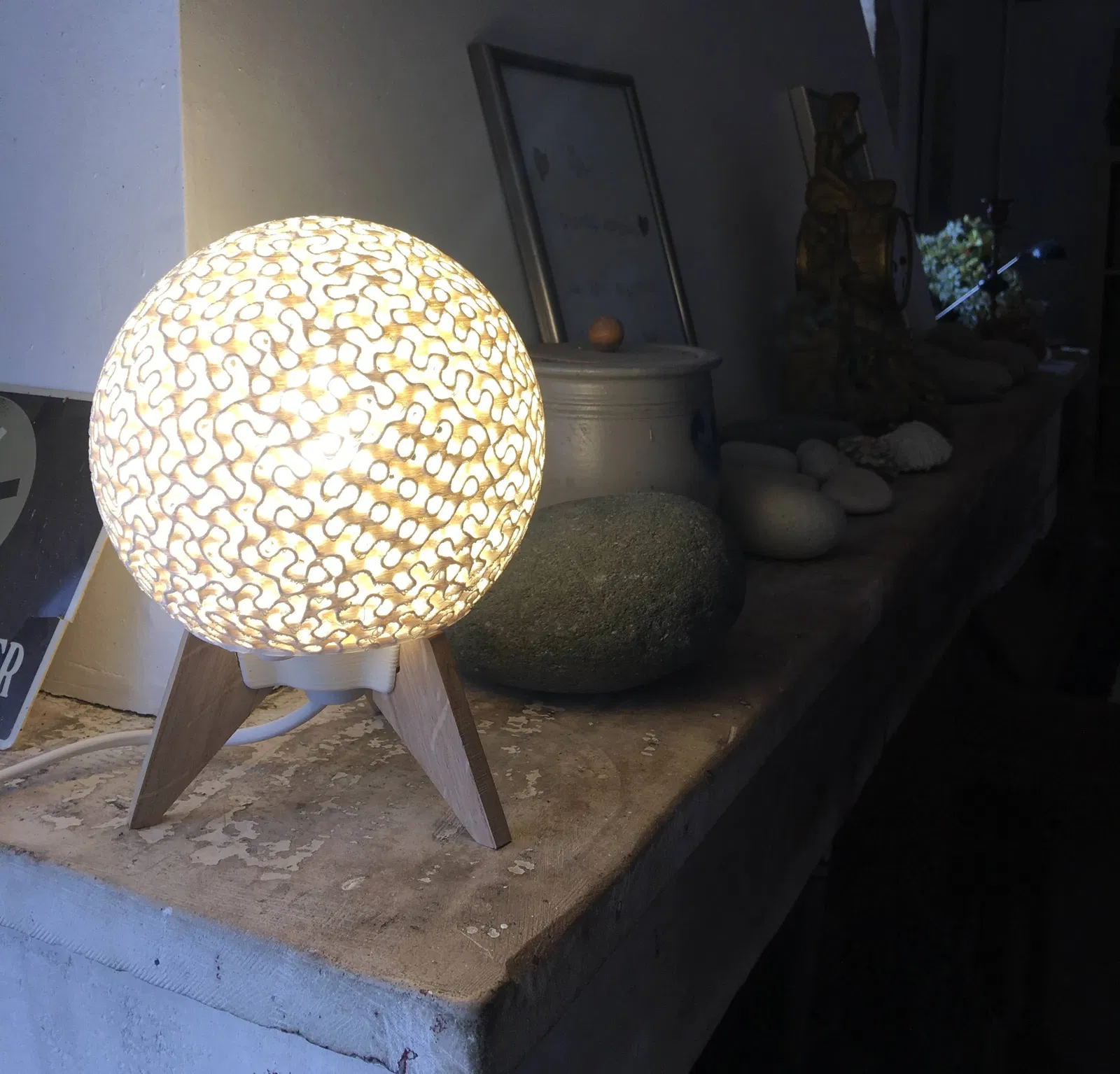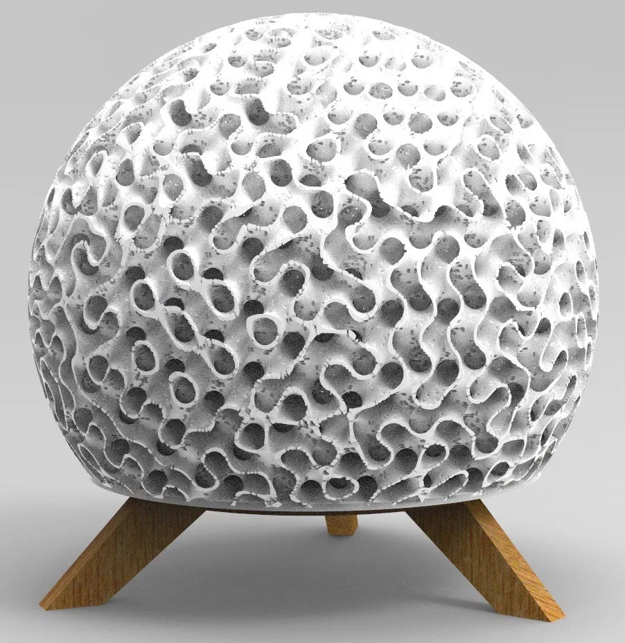 Một thiết kế chao đèn điều khiển bằng tham số, được tạo ra từ cấu trúc dạng lưới. Sản phẩm in ổn định không cần hỗ trợ với chất liệu PLA và phù hợp sử dụng bóng đèn LED.