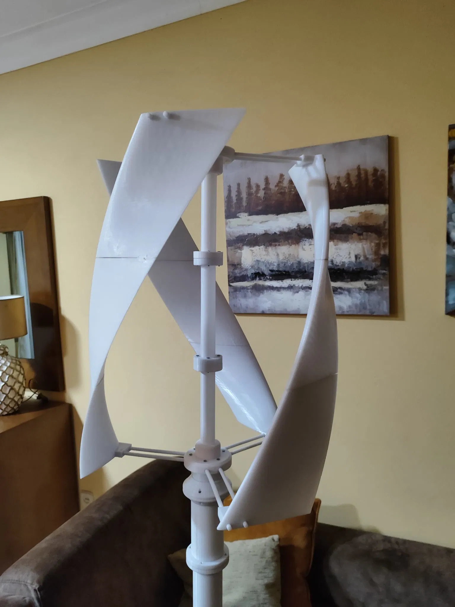 Mô hình cột gió Darrieus 3D hiện đại, thiết kế cánh cong độc đáo, phù hợp làm mô hình để bàn, công cụ giảng dạy hoặc trang trí cho người yêu năng lượng tái tạo. Đã hoàn thiện, sẵn sàng in.