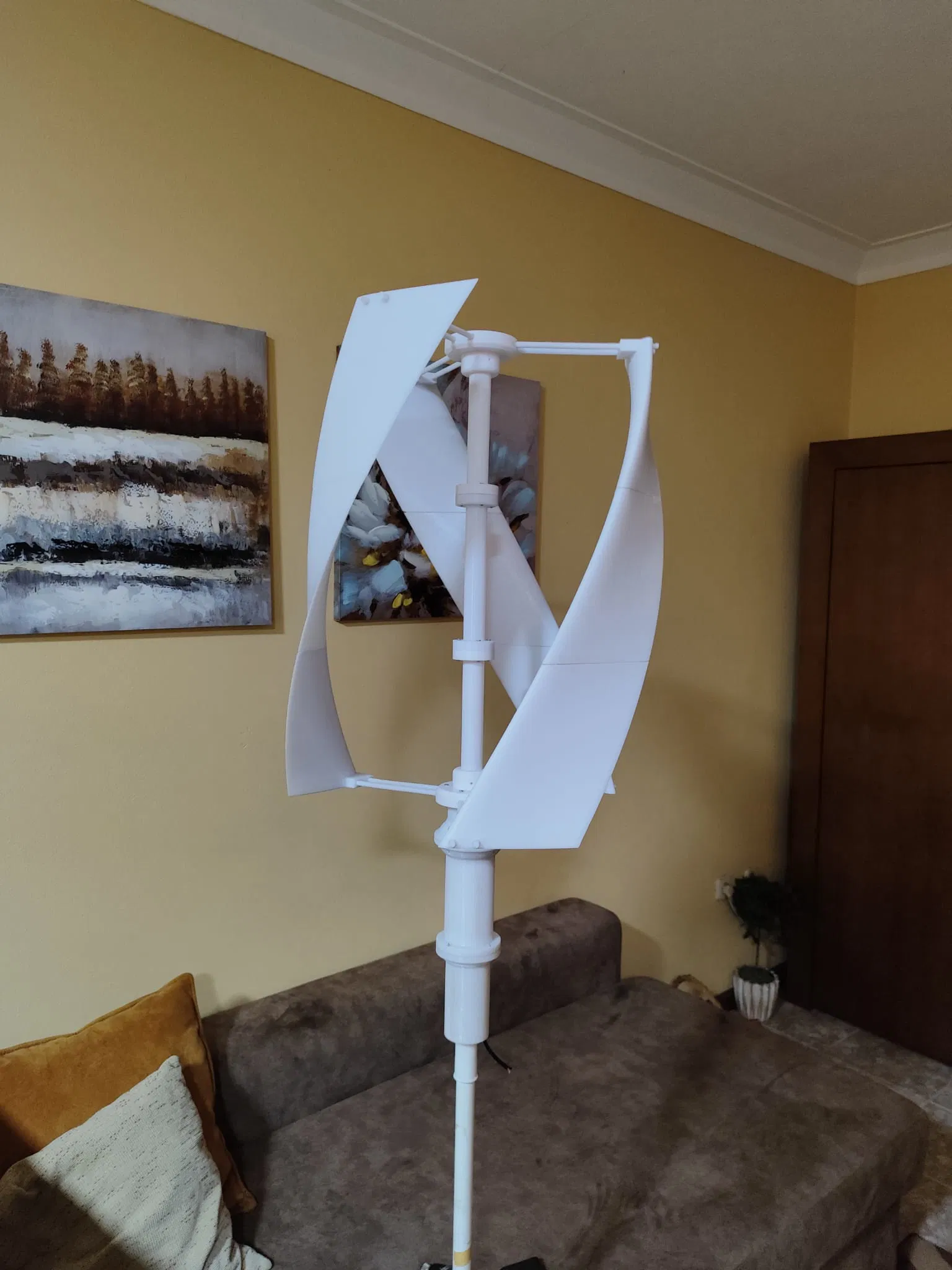 Mô hình cột gió Darrieus 3D sạch và hiện đại. Với thiết kế cánh cong độc đáo, chiếc cột gió này hoàn hảo làm mô hình để bàn, công cụ giảng dạy hoặc vật trang trí cho những người đam mê năng lượng tái tạo.