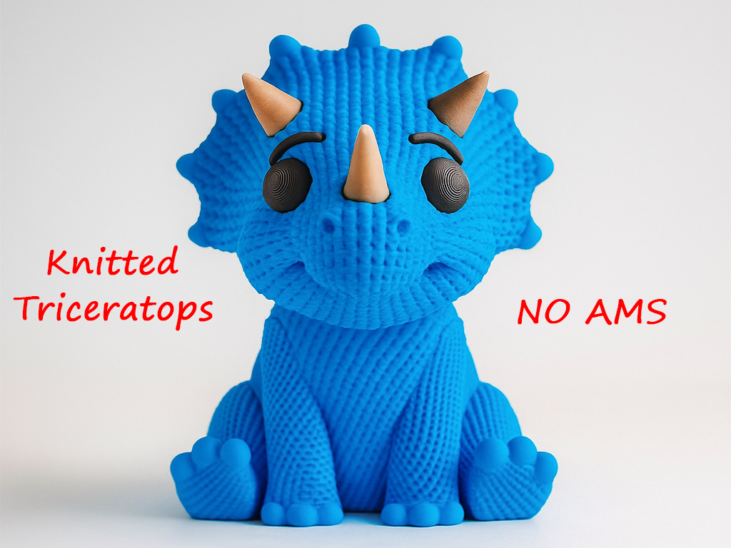 Mẫu khủng long Triceratops đan cực kỳ dễ thương, in 1 mảnh không cần AMS. Tuyệt vời để làm quà tặng hoặc trang trí. Phiên bản tách rời có sẵn để tải về miễn phí.