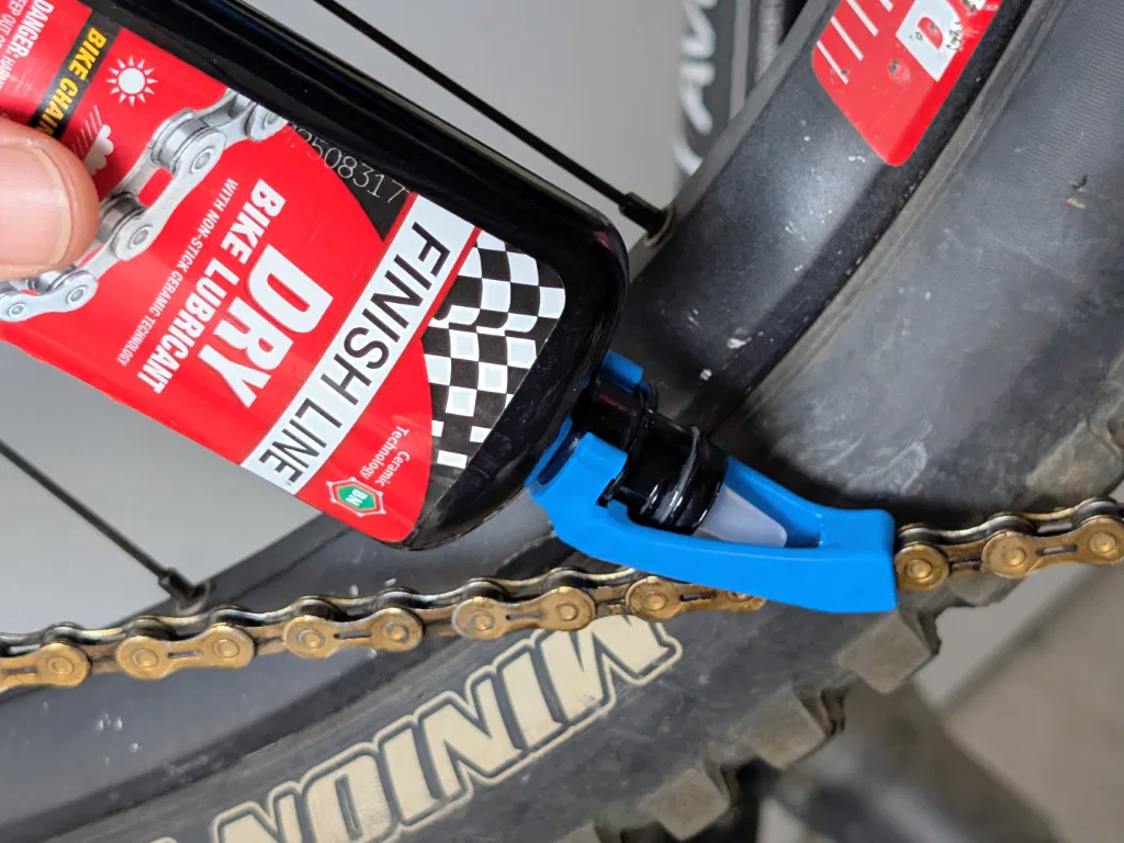 Cái dẫn hướng này giúp giữ đầu chai dầu nhớt luôn ngay giữa sên khi bạn quay giò đạp. Nó giúp việc tra dầu sên xe đạp trở nên đỡ phiền phức và sạch sẽ hơn rất nhiều. Phù hợp với chai dầu Finish Line.
