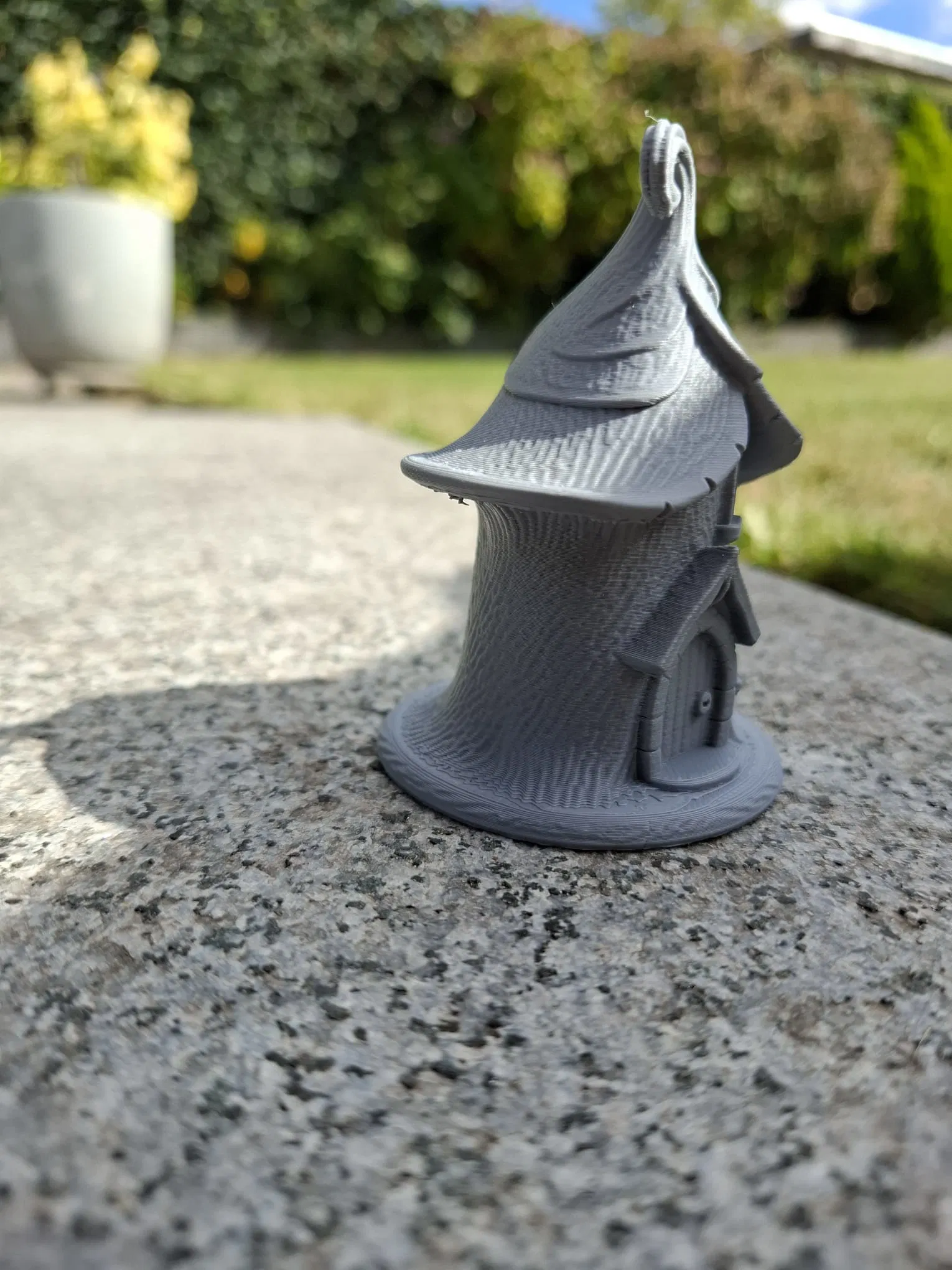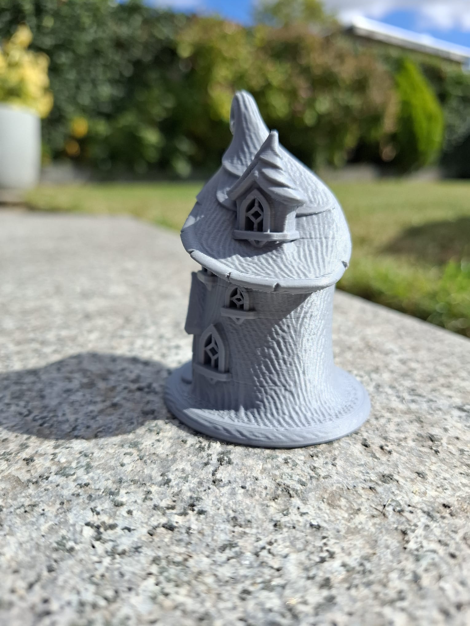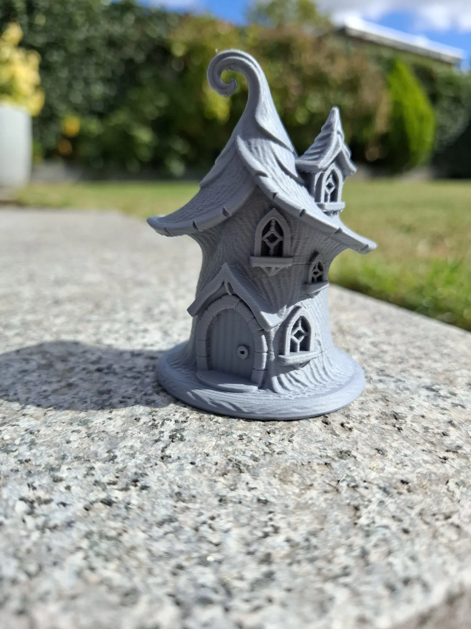 Ngôi nhà kỳ ảo này có mái nhà xoắn tít như chiếc nón, cửa vòm và những ô cửa sổ nhỏ hình viên ngọc - hoàn hảo cho các mô hình diorama, vườn cổ tích, hoặc để trưng bày trên kệ sách.
