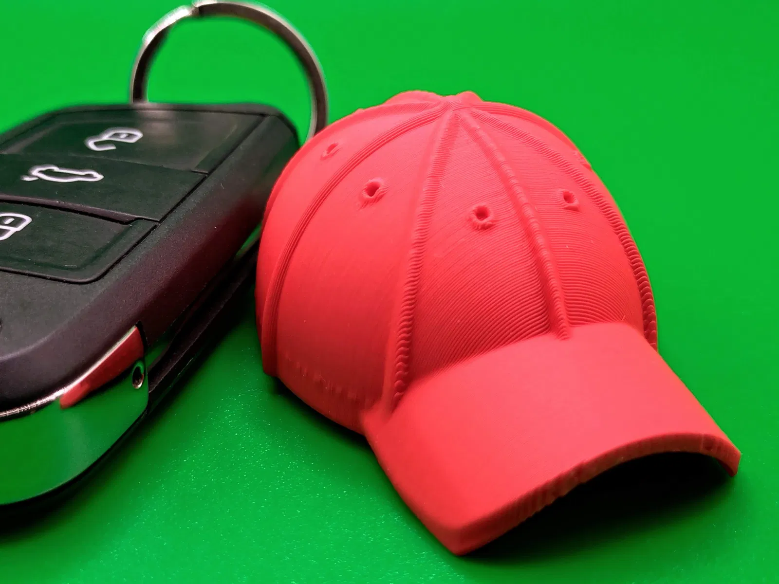 Móc khóa hình cái nón, phù hợp để trang trí chìa khóa xe hoặc túi xách. In với 15% độ đặc và cần dùng support.