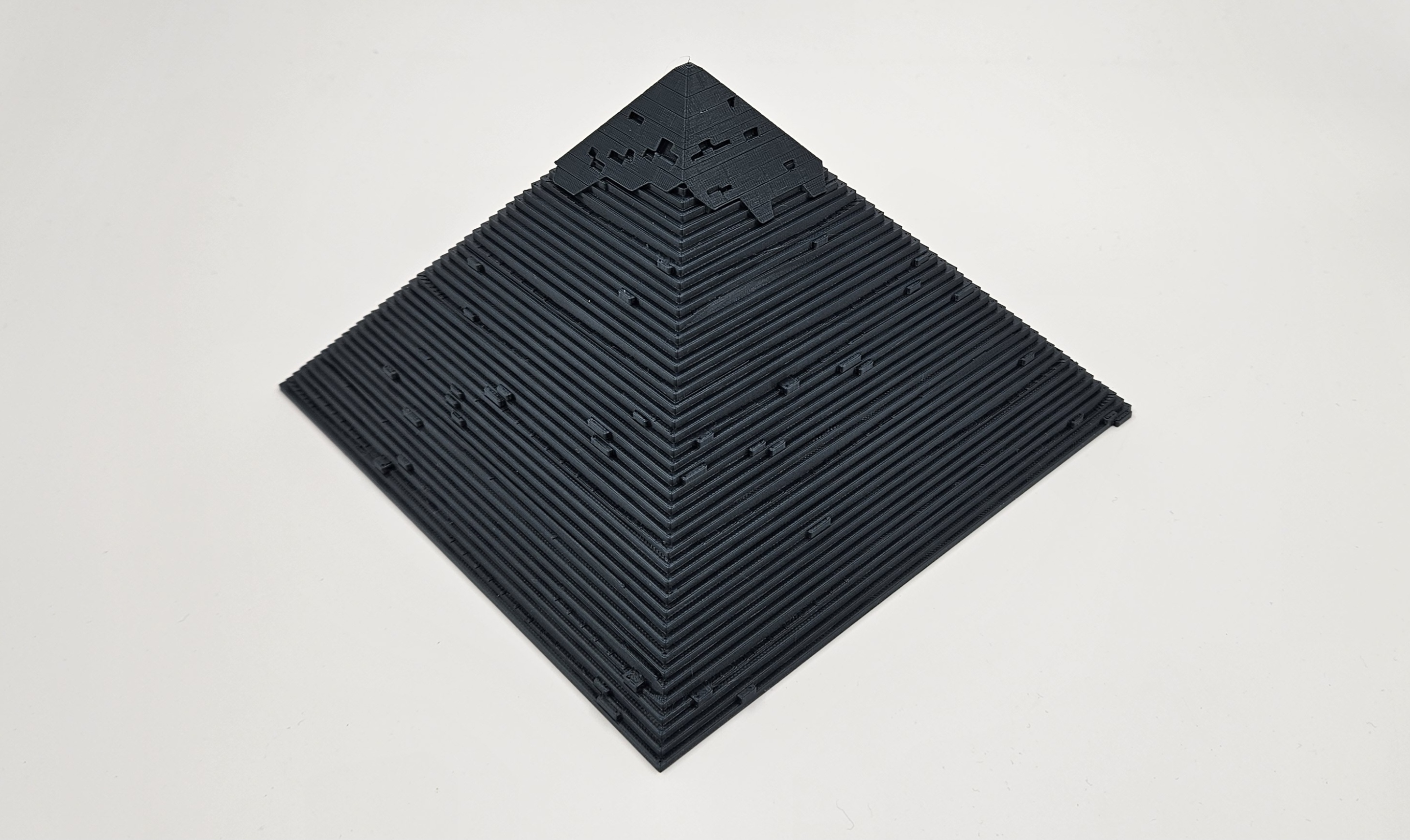 Mô hình kim tự tháp chân thật. Mấy cái kim tự tháp khác trên thị trường thường có bề mặt trơn láng, nhưng bên ngoài thì mấy kim tự tháp đâu có giống vậy đâu. Mô hình này được thiết kế để dạy cho các bạn khiếm thị, nên khuyên là nên in khổ lớn nha. In với độ cao lớp (layer height) 0.2mm và 3D độ đầy (infill) 5% là được rồi. Mô hình này cũng có thể dùng để làm diorama hoặc các mô hình sáng tạo mini chân thật khác.