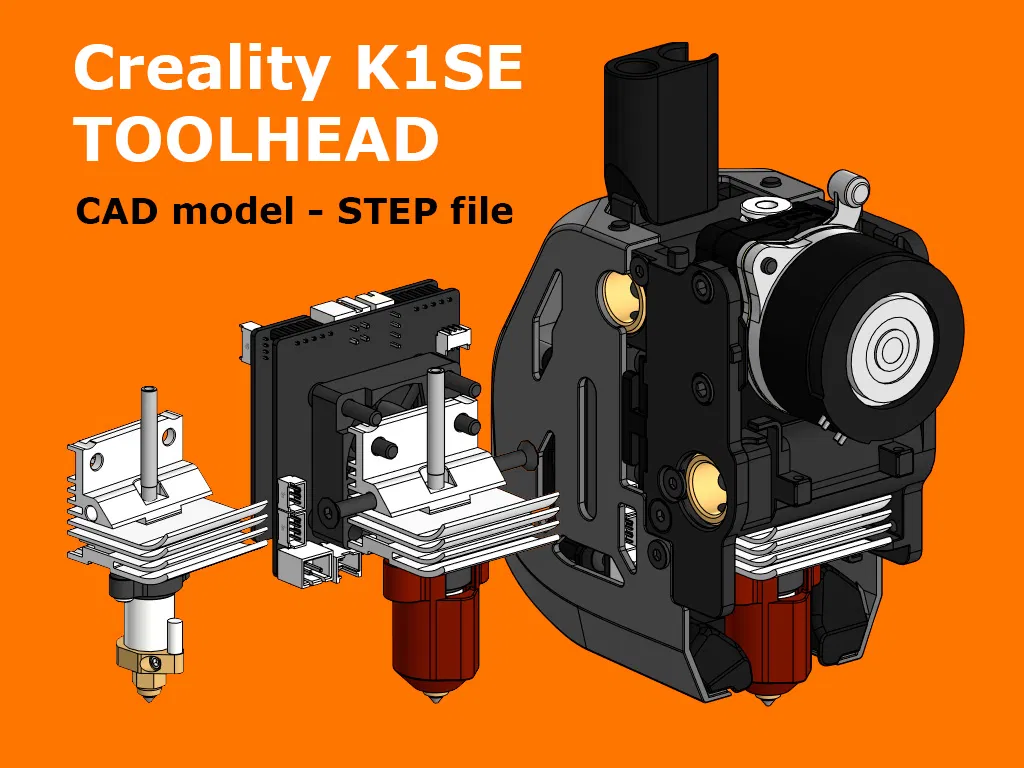Bộ lắp ráp đầu in Creality K1 SE (mô hình CAD) được kỹ thuật đảo ngược và cung cấp dưới dạng file STEP. Bản cập nhật gần đây đã bổ sung các chi tiết quạt, đầu nối, lò xo và phục hồi các bộ phận bị thiếu.