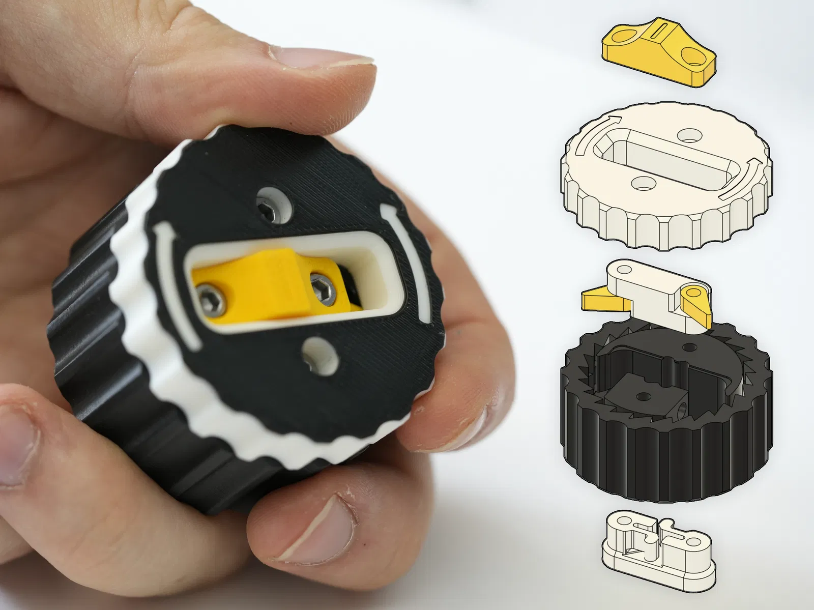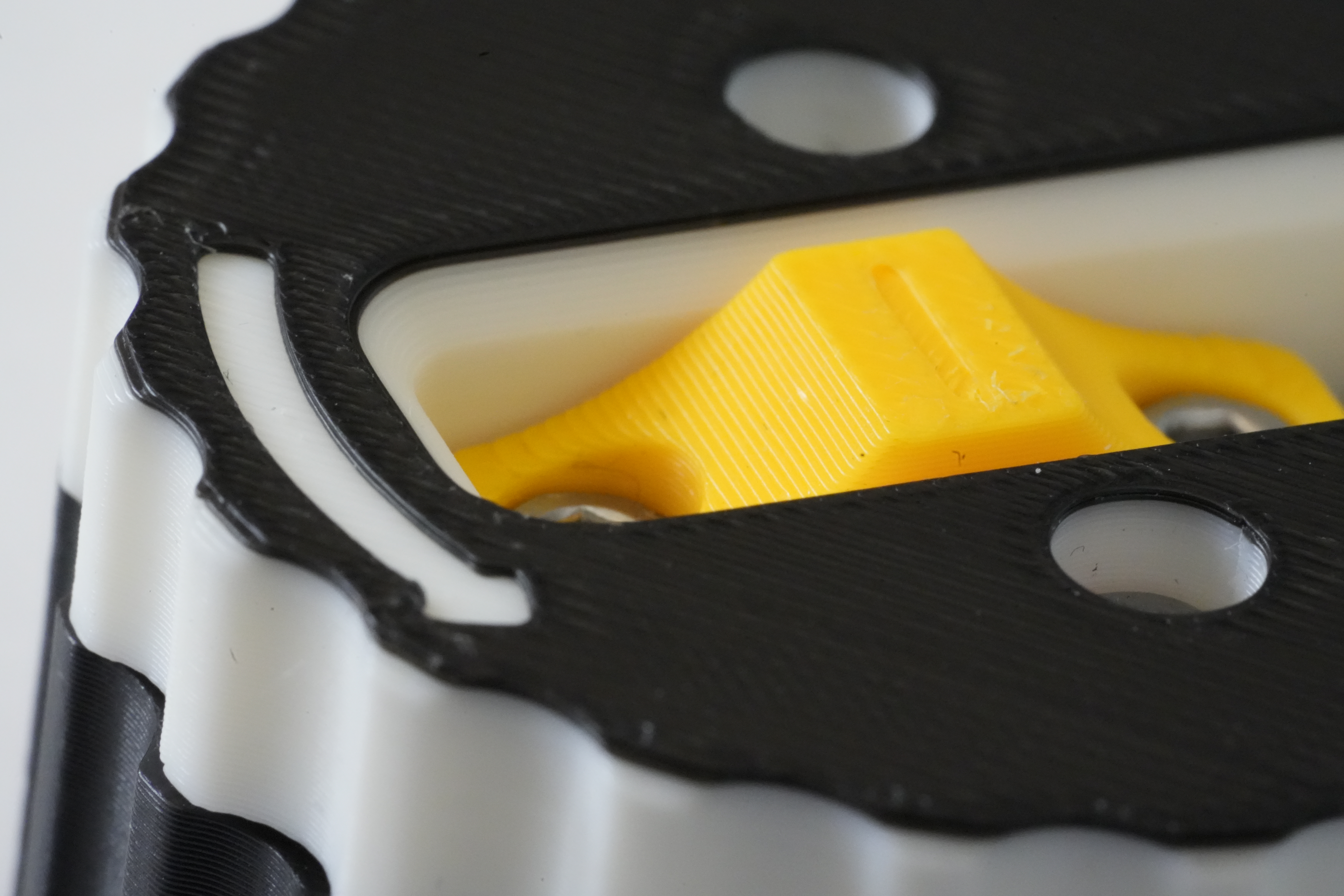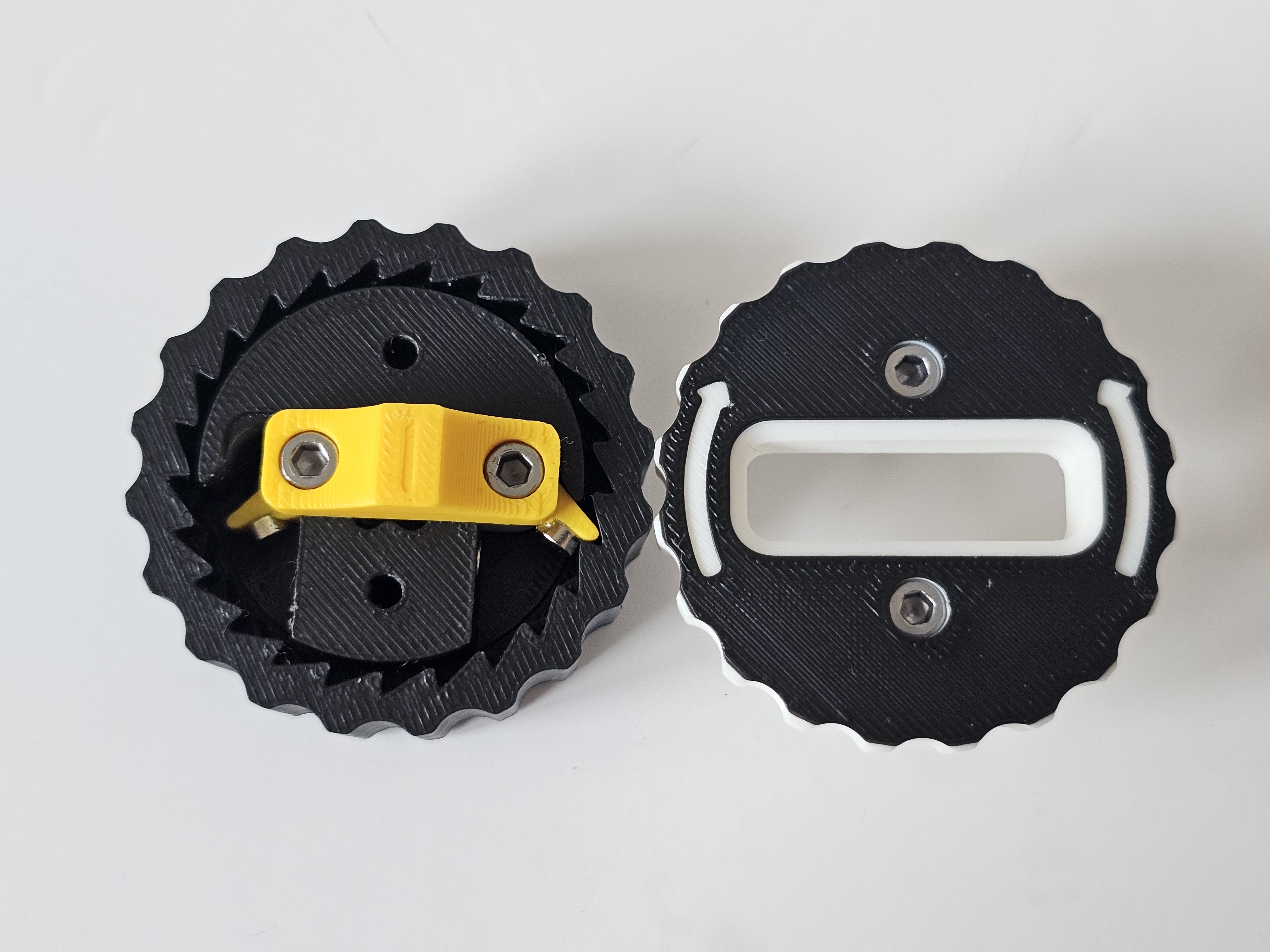 Chuẩn bị tất cả các bộ phận. In PLA cho tất cả các bộ phận là ổn, nhưng tui khuyên dùng PETG cho "slider latch" vì nó có các chốt linh hoạt. In với 4+ lớp vỏ và mật độ ruột 30% trở lên. Kiểm tra xem đế có xoay trơn tru không. Nếu xoay khó, hoặc bị kẹt, hãy thêm một ít dầu có độ nhớt thấp vào giữa hai bộ phận chuyển động.