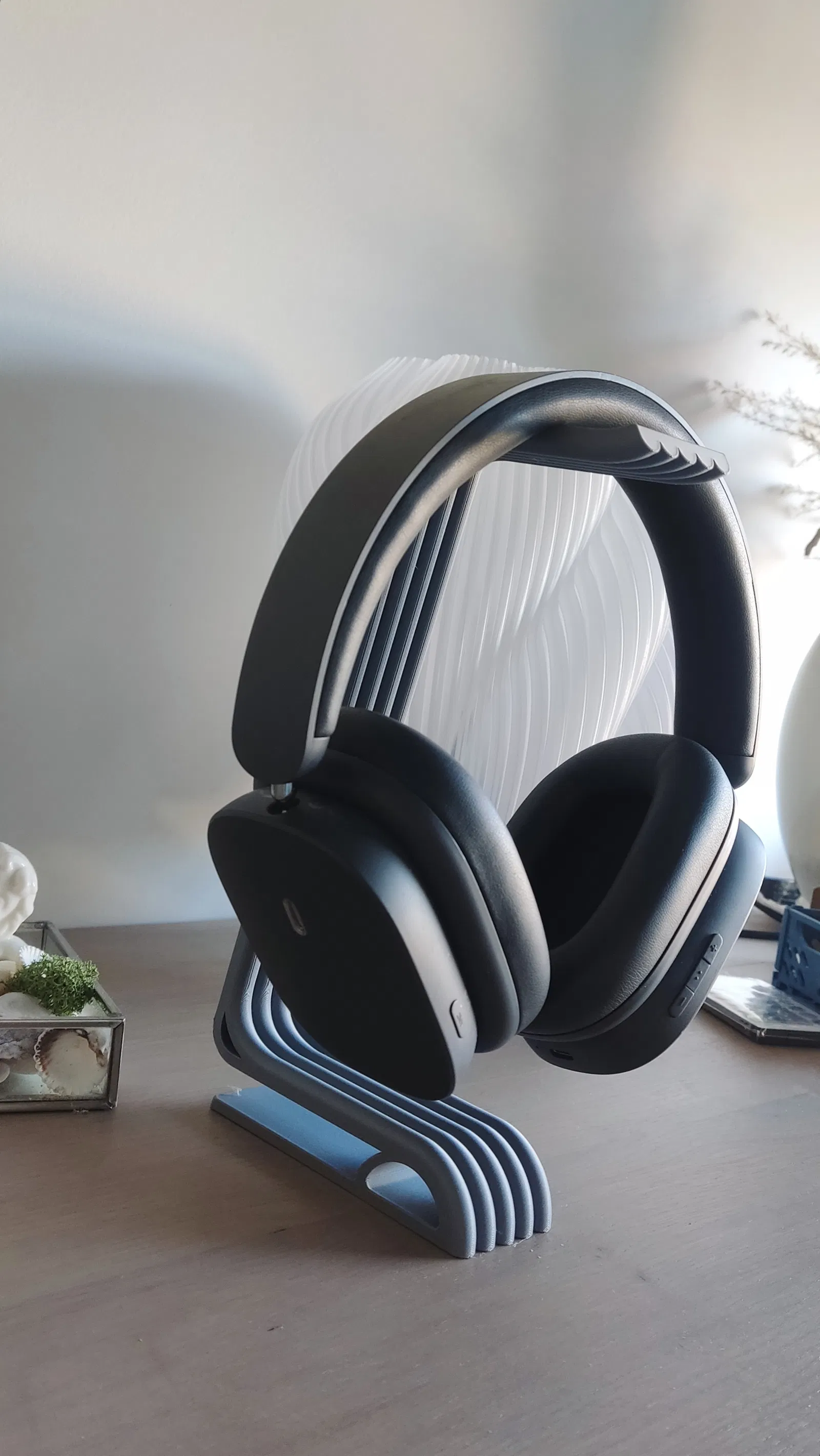 Chân đế vững chãi và các đường cong thanh thoát mang lại sự hỗ trợ thiết thực cho tai nghe của bạn, đồng thời nâng cao thẩm mỹ tổng thể cho bàn làm việc hoặc căn phòng của bạn.