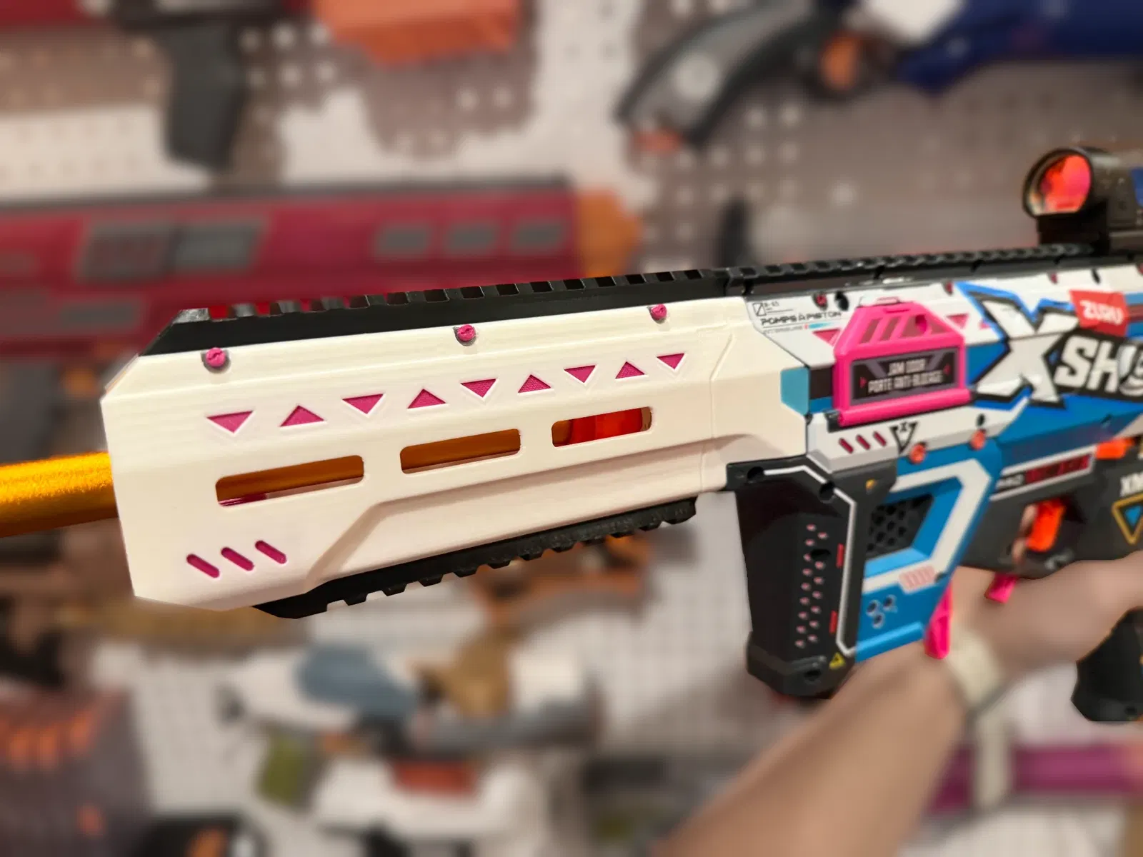 Đây là mặt trước mới cho XShot MPP, được thiết kế lại để trông giống báng súng hơn. Với sáu khe mlok, thiết kế tách rời để dễ lắp ráp và nhiều mảnh nhỏ để tách màu, bộ phận này mang lại vẻ ngoài độc đáo và tiết kiệm vật liệu. Lắp ráp đơn giản bằng cách sử dụng ốc M3 và ray picatinny.