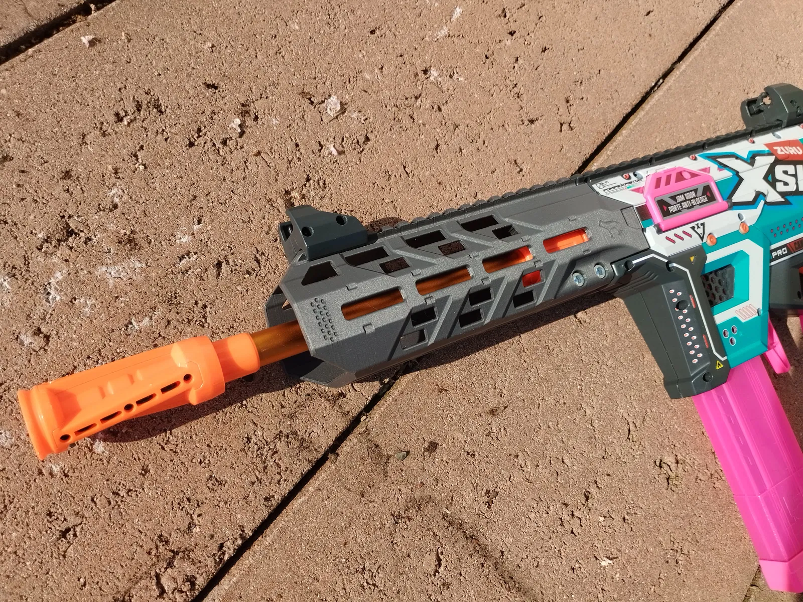 Ốp lết tay cho Súng Bơm Piston Motor XShot 'Utonagan'. Có picatinny ở vị trí 12 giờ và M-LOK ở hai bên và dưới. Trượt qua cái cục giữ nòng từ phía trước. 2 con ốc siết chặt lại. File .stl đã được định hướng sẵn. Có kèm file .stp. Có thể in không cần hỗ trợ.
