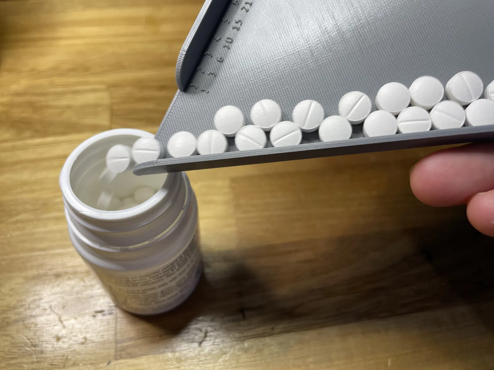 Cái khay đếm này xài được với mọi kích cỡ thuốc, miễn là nó tròn và đồng nhất.