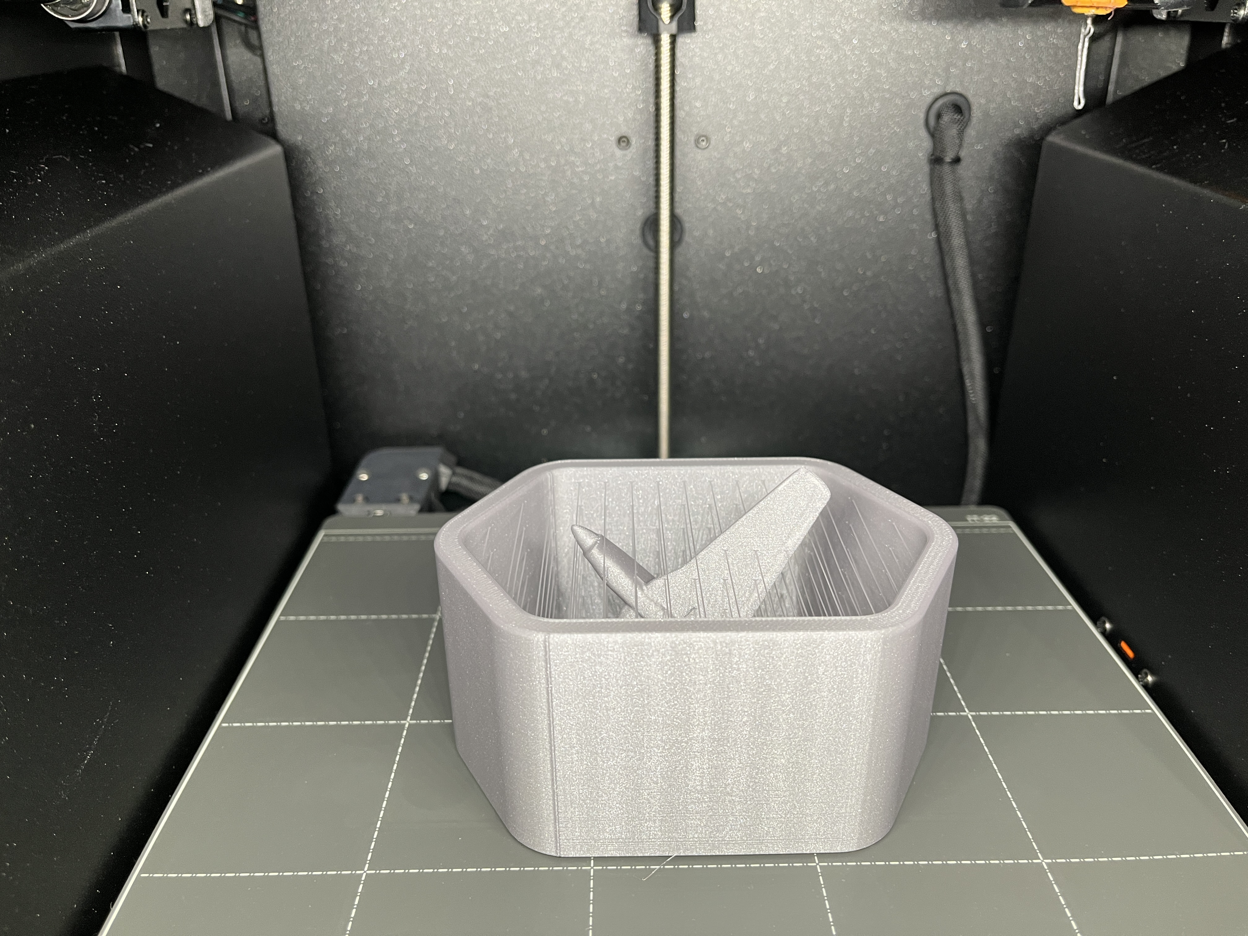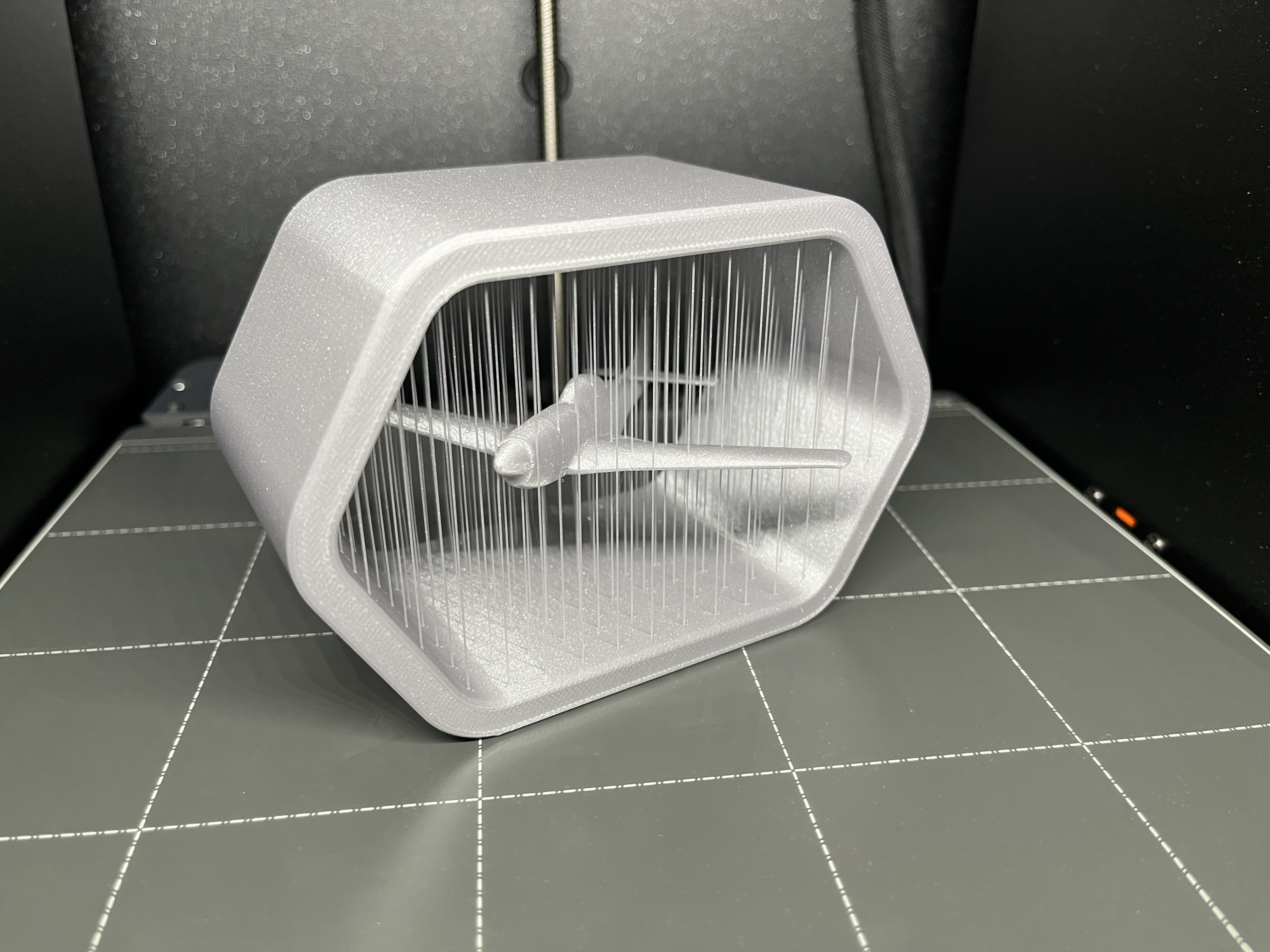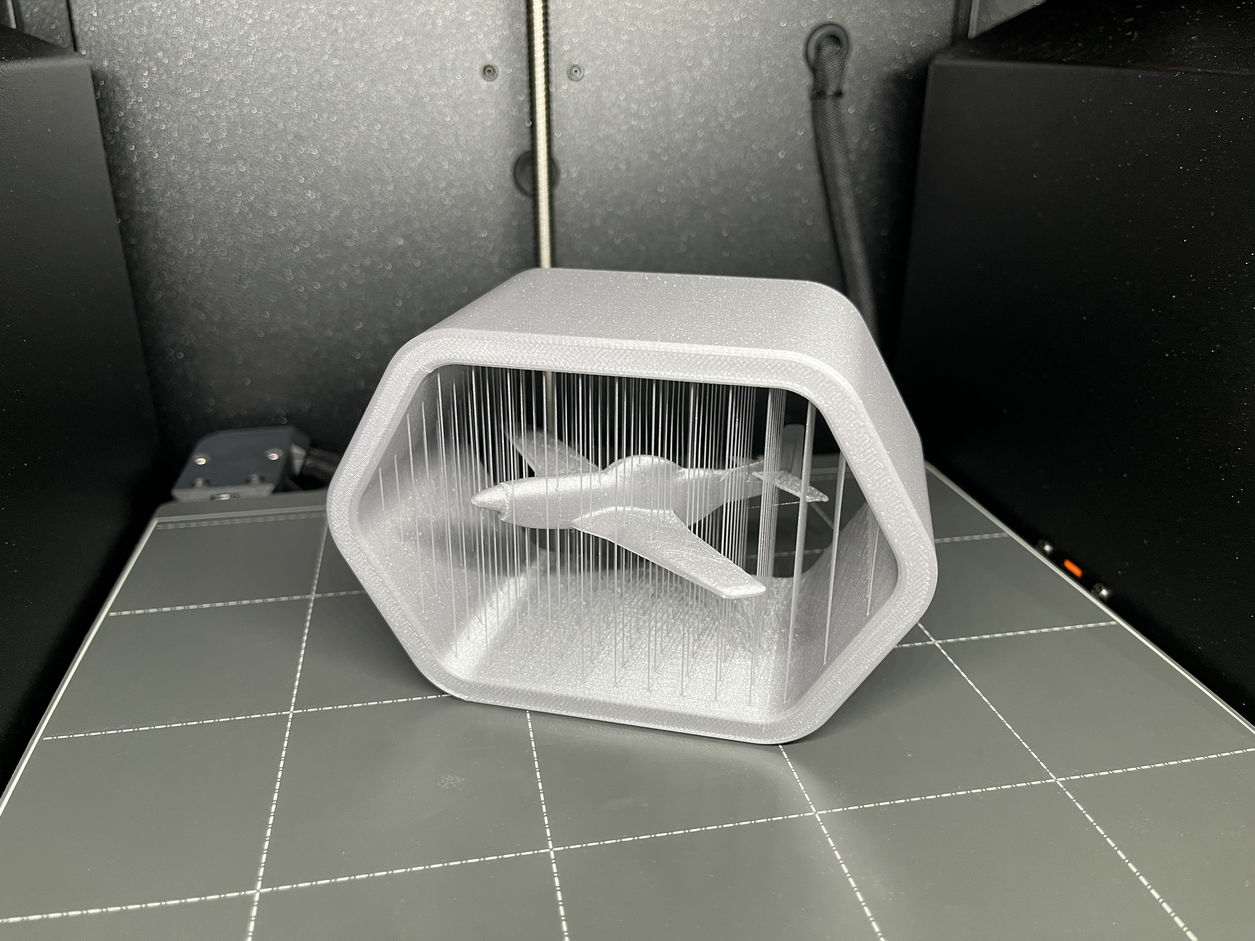 In trên máy Prusa Core one, độ cao lớp 0,2mm, dùng PLA, không cần support và không cần raft. Cái khay in phải thiệt sạch để lớp đầu tiên dính tốt nhất, tại vì cái diện tích tiếp xúc của máy bay nó nhỏ lắm. Máy của tui in được lần đầu luôn.