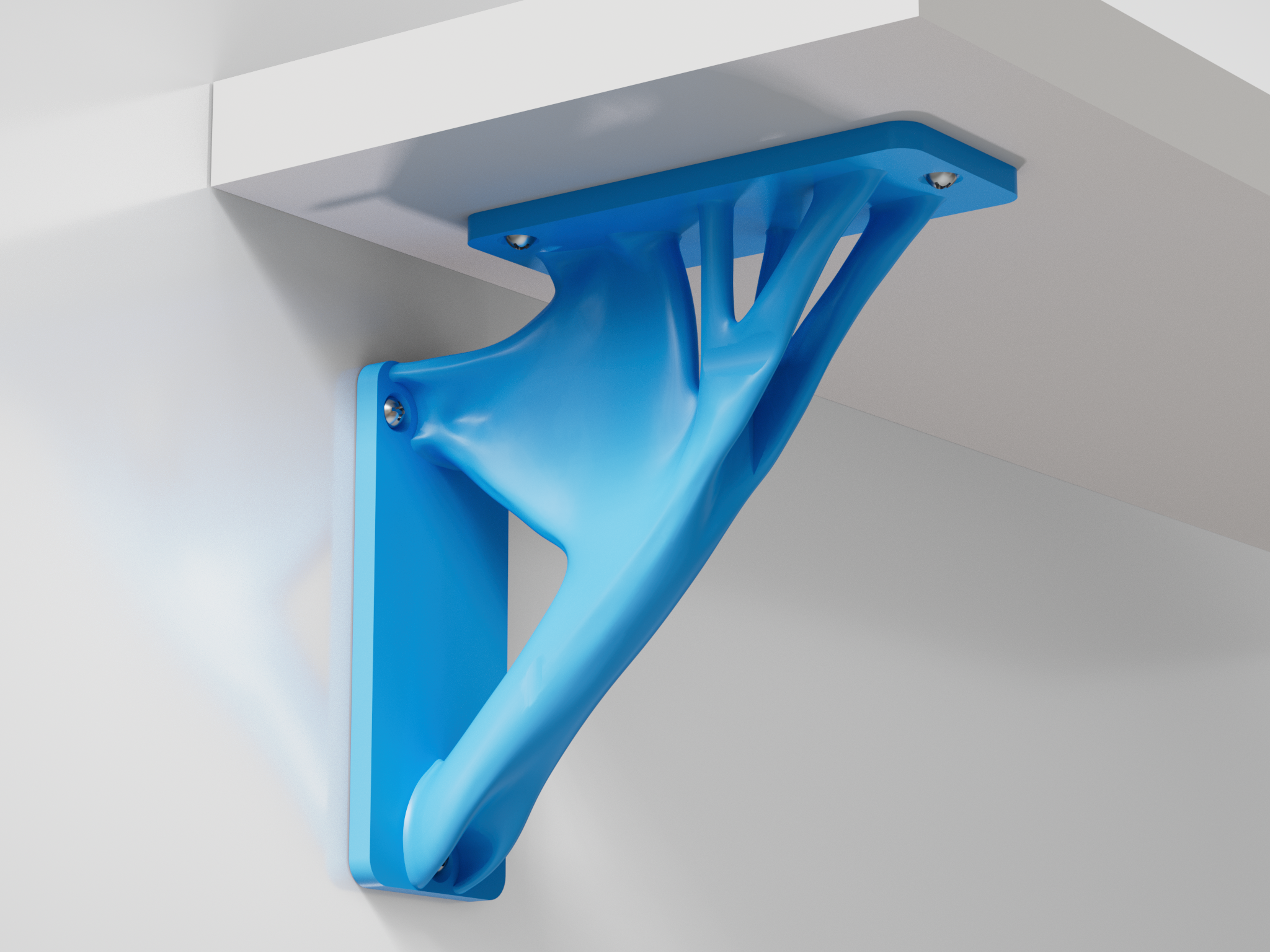 Đây là một cái chân đế kệ nhẹ, được tối ưu hóa topology, thiết kế để chịu lực tốt và tiết kiệm vật liệu tối đa. Cấu trúc hữu cơ của nó đảm bảo khả năng chịu tải cao trong khi vẫn giữ được vẻ ngoài thanh lịch.