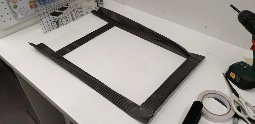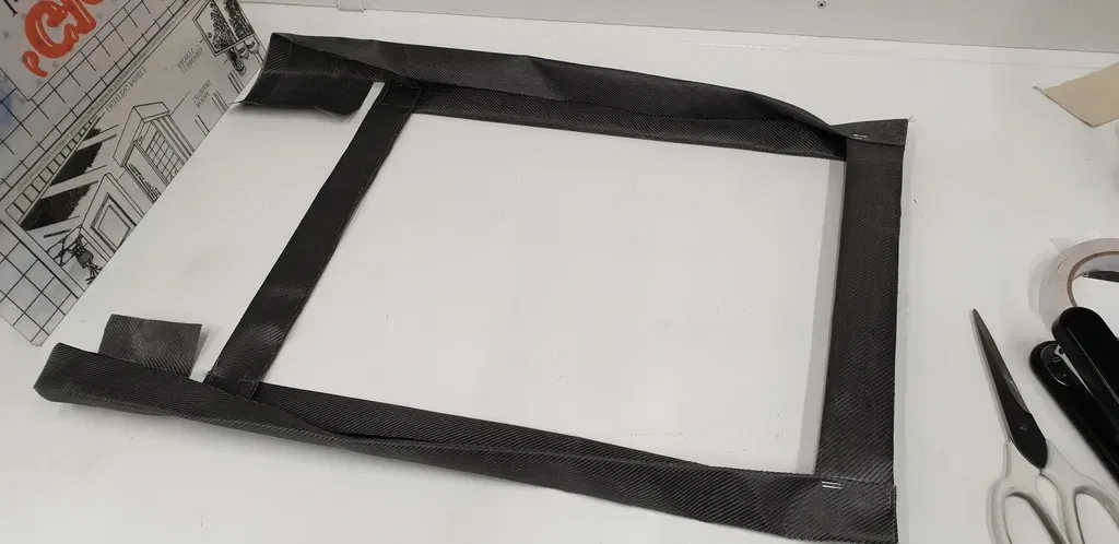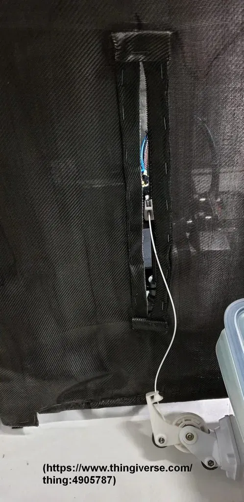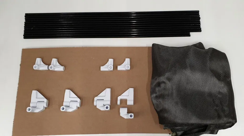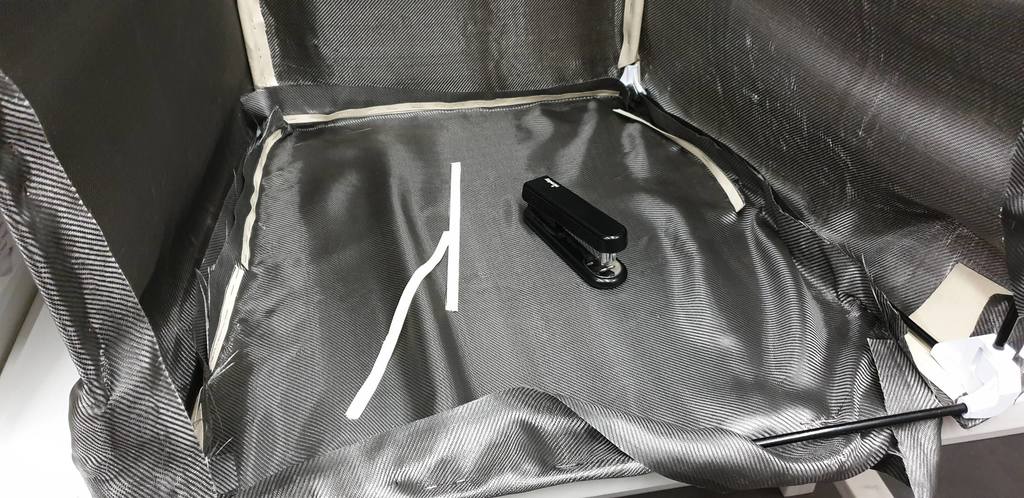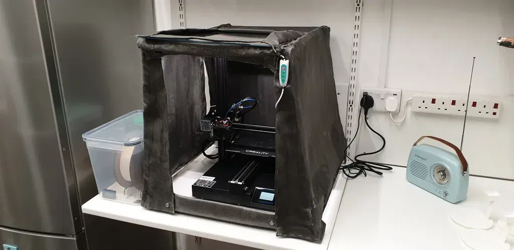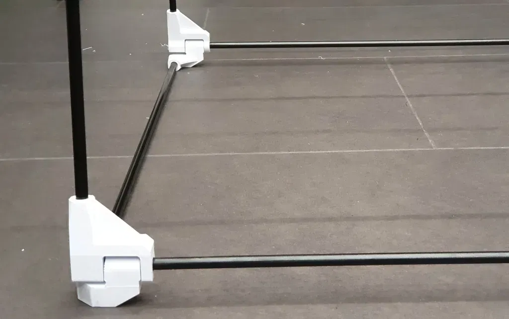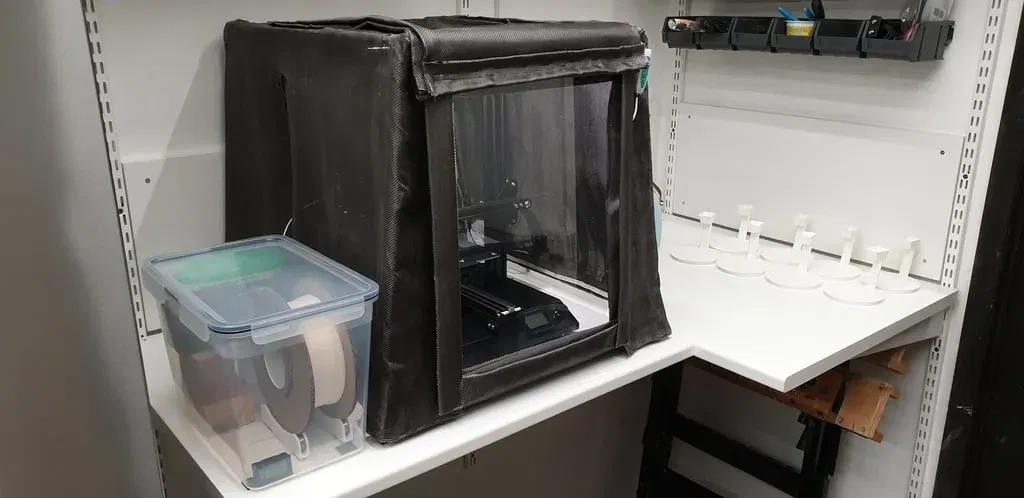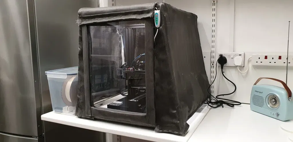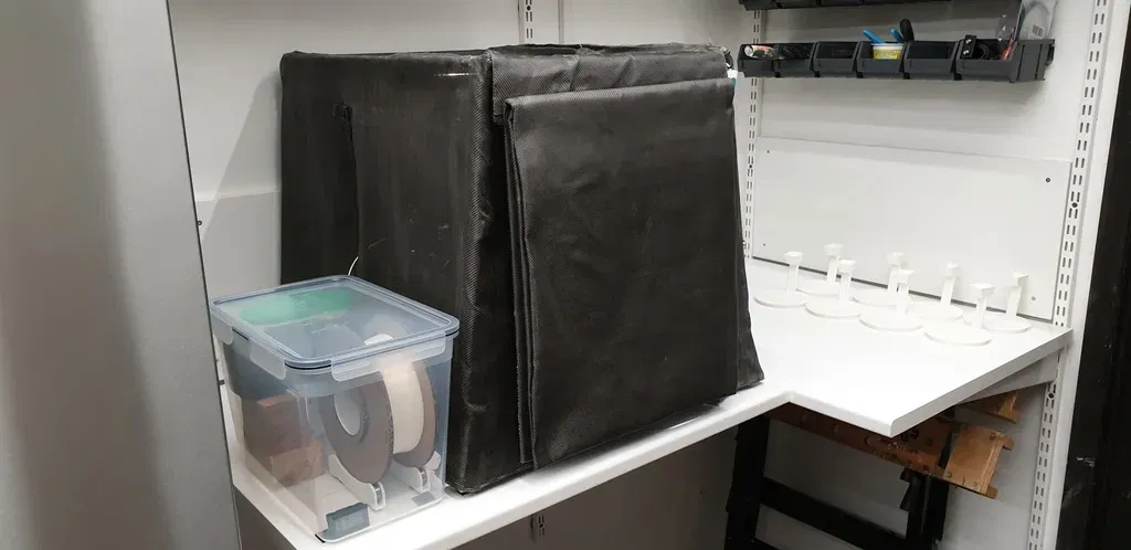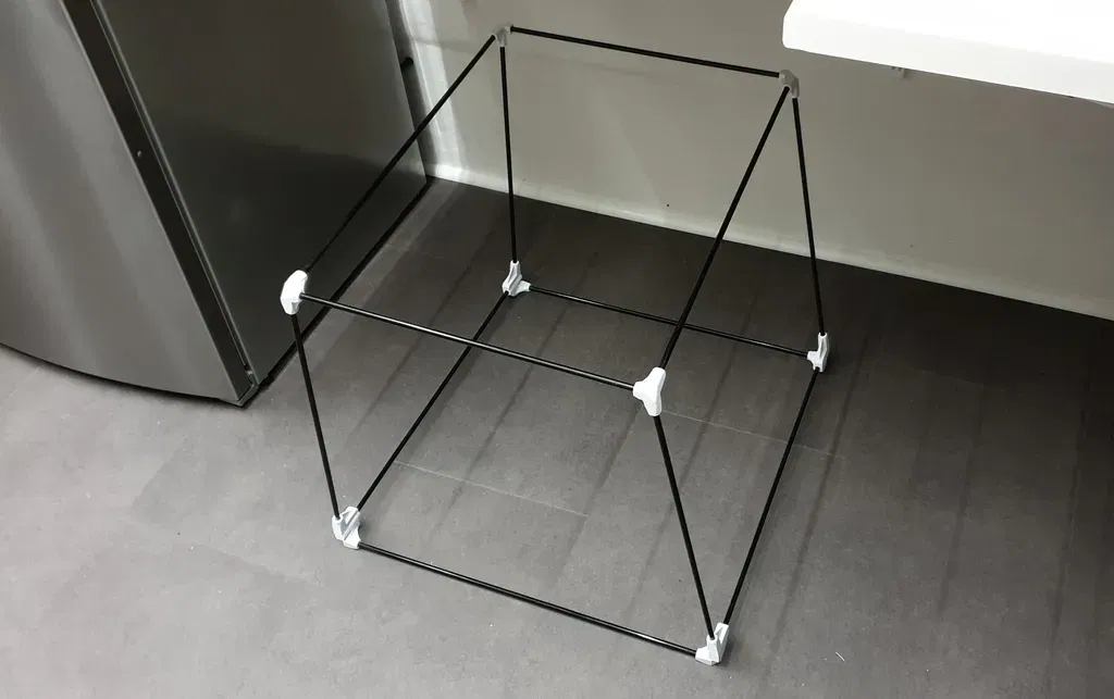 Một vỏ bọc cho máy in 3D, có một khung của các cột lều bằng sợi thủy tinh và da twill sợi thủy tinh.
