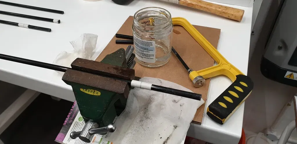 Nhưng có thể mài chúng ra đến kích thước chính xác, bằng cách kẹp một đoạn thừa của thanh tent vào một cái khoan điện và sau đó nhẹ nhàng - ở tốc độ thấp - đưa vào các khớp với cái này.