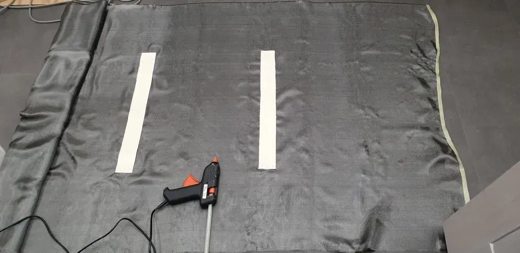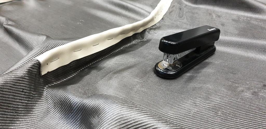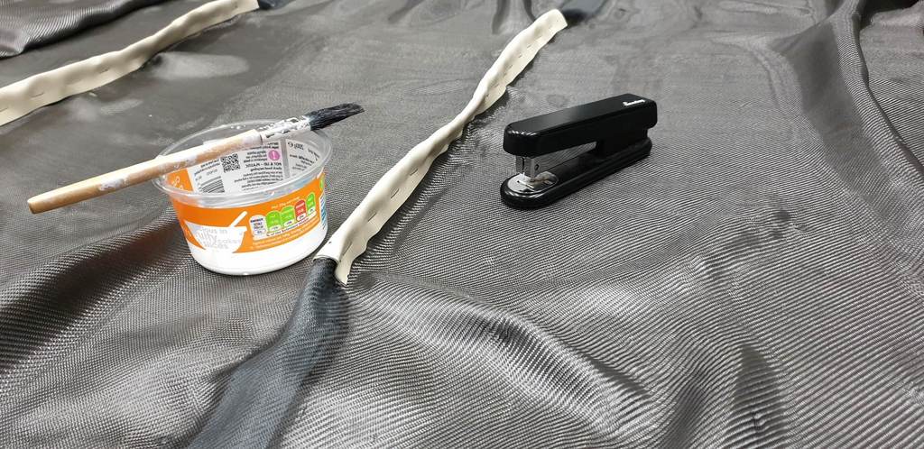 Lớp phủ bằng vải sợi thủy tinh tạo ra khả năng chống cháy trong trường hợp xấu nhất xảy ra. Điều này cũng yêu cầu một "đường chỉ" không cháy, và tôi đã sử dụng ghim kim loại, đây là một phương pháp nhanh chóng nhưng không tinh tế, và vải sợi thủy tinh dễ bị thủng. Nó đã giúp phần nào khi tôi làm lớp lót cho vải trước khi sử dụng, bằng cách sử dụng PVA loãng, và để khô trước khi cắt và ghim lại.