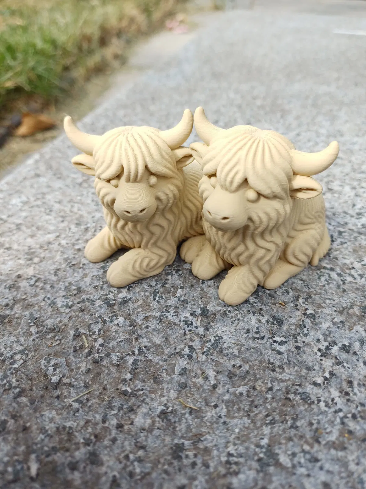 Xin chào cả nhà, đây là "bộ sưu tập" bé tí tẹo mà bạn sẽ được sở hữu: hai chú bò Highland bé bỏng, lông xù siêu đáng yêu, làm gì cũng có đôi có cặp nè — canh gác bàn làm việc, giám sát đồ ăn vặt, và "ò… ó… o…" cho bạn nghỉ ngơi thư giãn nha.