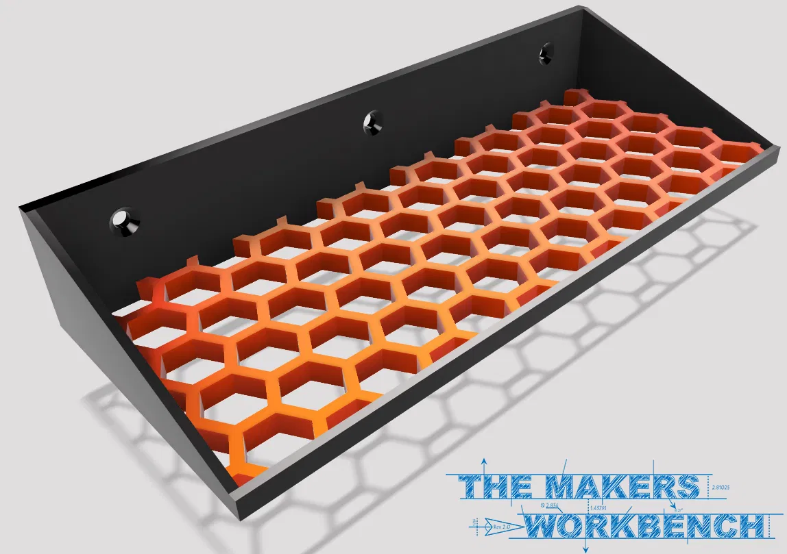 Remix từ mẫu Pegboard Screwdriver Holder để dùng trên bàn điện tử không có pegboard. Bản này gắn bằng vít hoặc băng keo hai mặt, khớp chuẩn honeycomb 7mm và base 5mm như model gốc.