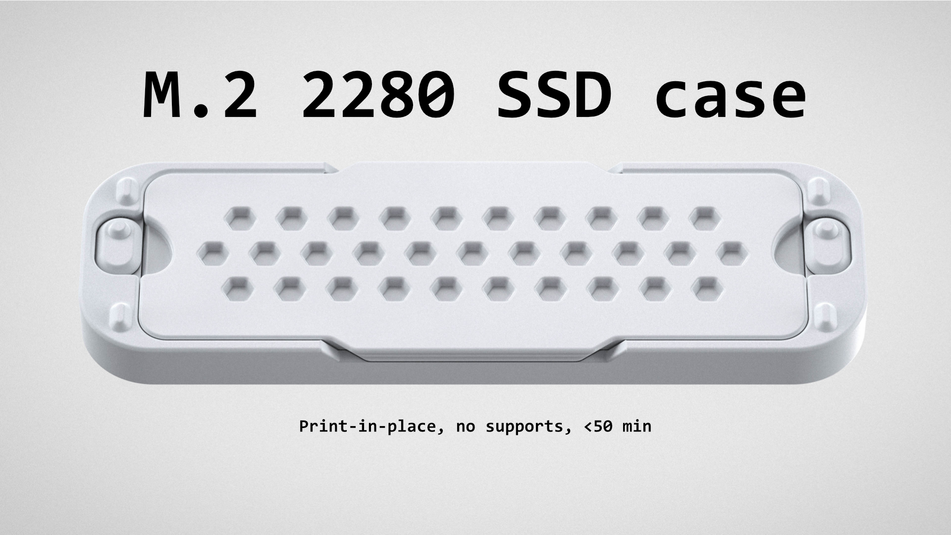 Hộp đựng ổ cứng M.2 / NVME SSD, in tại chỗ với nắp khóa. Phù hợp cho bo mạch 2280 kích thước tiêu chuẩn, không có tản nhiệt lớn. Các chốt gập có thể xoay sau khi in.