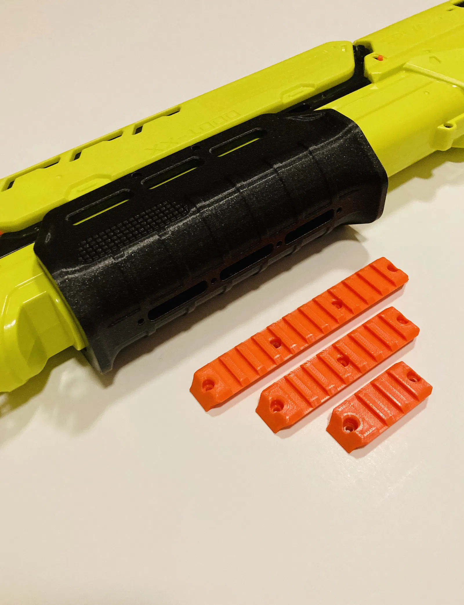 Tay cầm bơm độ cho Nerf Rival Saturn. Được thiết kế để dễ dàng in mà không cần hỗ trợ và dễ dàng lắp đặt bằng các ốc zin của tay cầm bơm. Có các khe M-LOK ở dưới cho phép gắn các phụ kiện M-LOK, cũng như các lỗ cho đai ốc M3 cho phép gắn ray picatinny in được bằng ốc M3. Nếu bạn chọn in ray picatinny và các phụ kiện đi kèm, bạn sẽ cần ít nhất 4 đai ốc lục giác M3 và một ít ốc đầu tròn M3 x 10mm để gắn chúng. Tôi khuyên bạn nên dán chặt đai ốc M3 vào bộ phận in để đảm bảo an toàn.