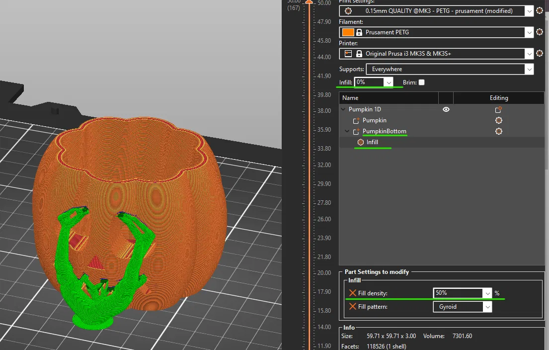 - không cần infill cho phần còn lại - nó không ảnh hưởng đến hiệu ứng ánh sáng và không hấp thụ ánh sáng.