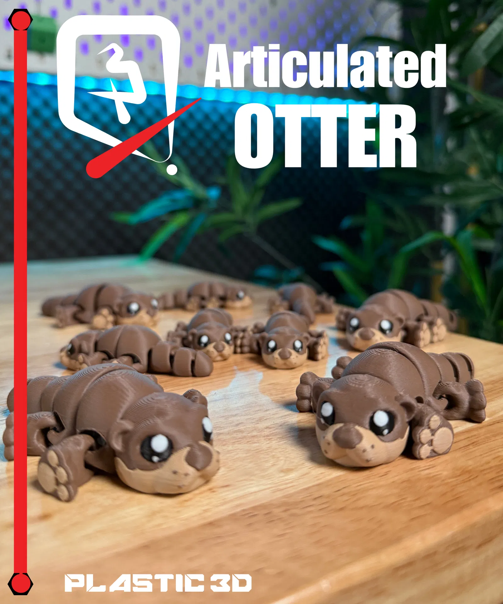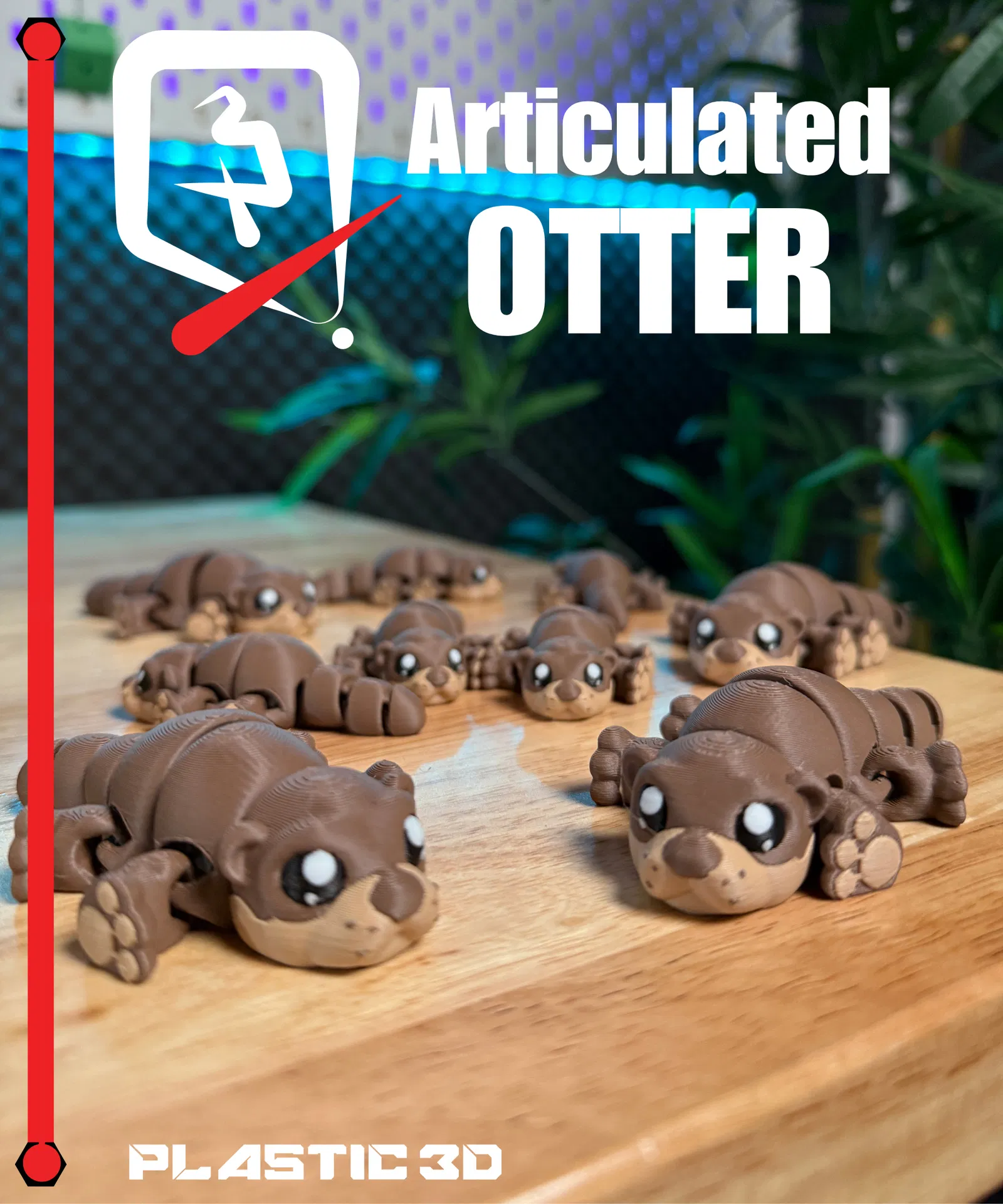 Rái cá khớp nối, in 3D, không cần hỗ trợ. Hoàn hảo làm thú cưng để bàn, đồ chơi hay quà tặng. Có khớp nối đầy đủ ở chân, đuôi, thân. Phong cách hoạt hình dễ thương, in đa sắc hoặc sơn. Tuyệt vời cho người yêu động vật và dân sưu tập!