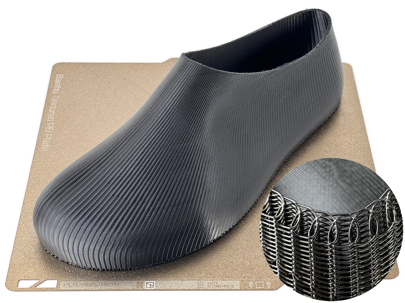 MK4, MK3, Core One có file gcode cho kích cỡ đến EU 40. Khổ in 250x250 phù hợp với mọi kích cỡ.