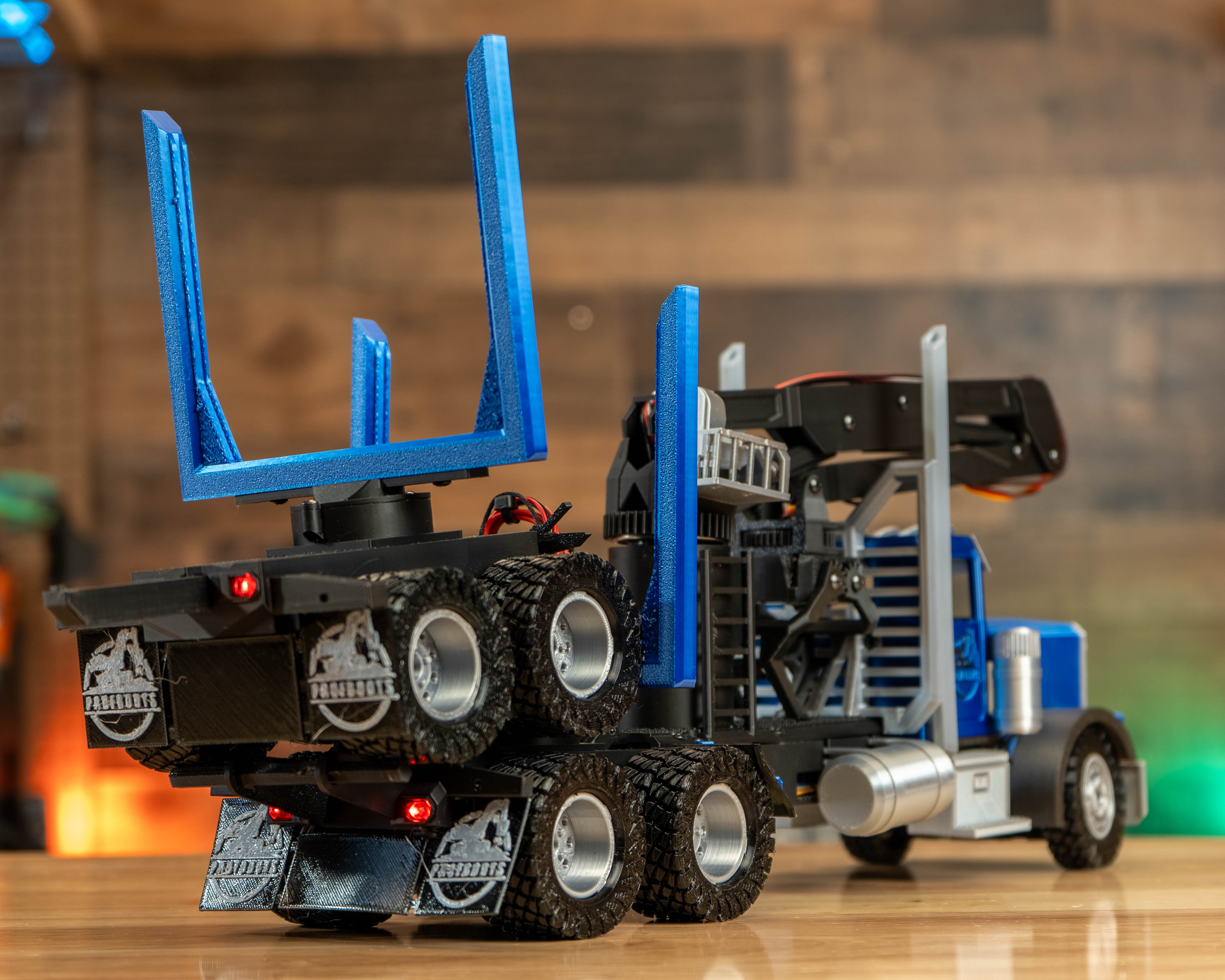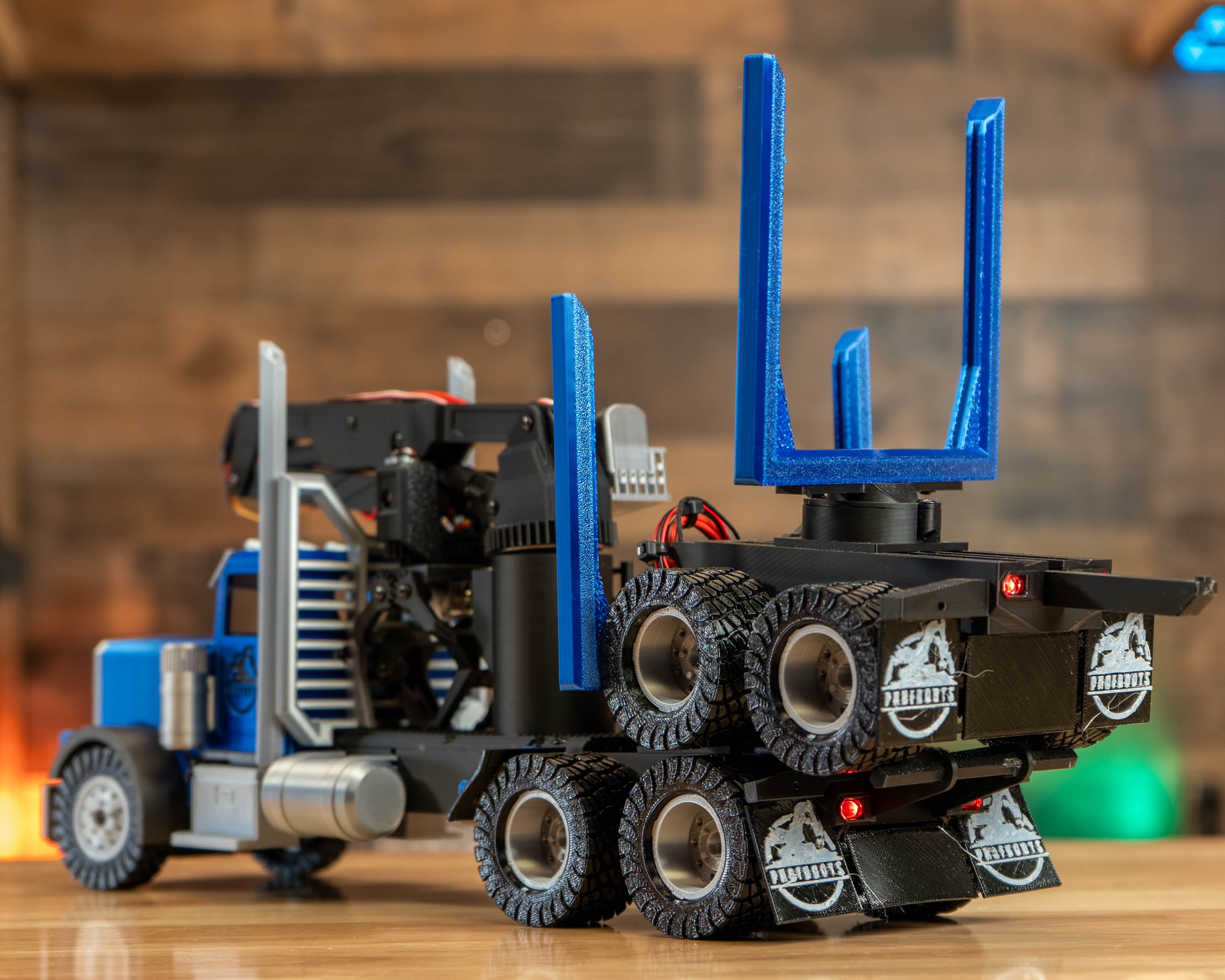 Đây là một chiếc RC LogTruck có chức năng tự tải hoàn toàn, ngoại trừ phần điện tử và phần cứng, còn lại đều được làm từ các bộ phận in 3D.
