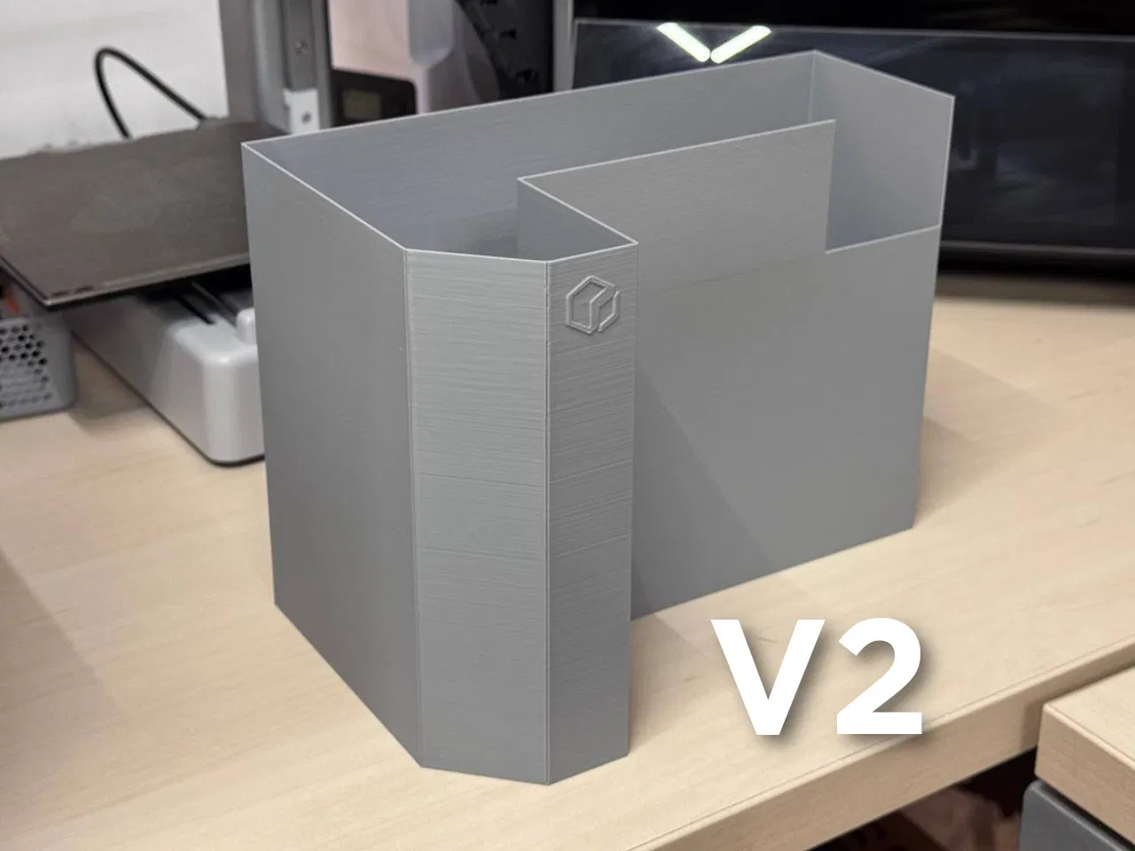 V2 (thẩm mỹ):** Tường dày hơn và vẻ ngoài gọn gàng hơn; cảm giác chắc chắn hơn; sử dụng khoảng 180 g sợi in.