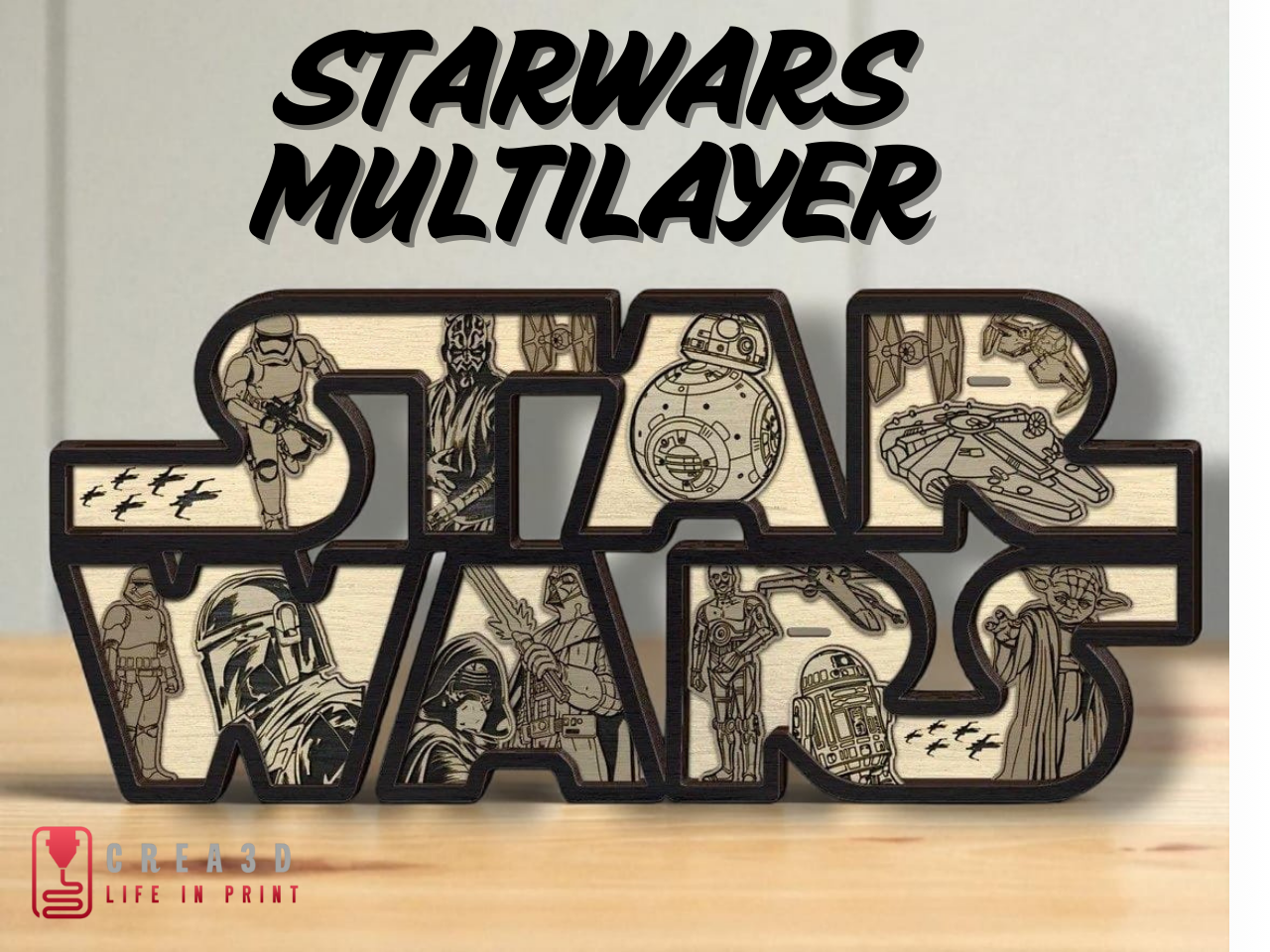 Mô hình STARWARS đa lớp này đẹp lắm, dễ in với công nghệ 3D printing. Phù hợp để trang trí nhà cửa, làm quà tặng hoặc thử thách giải đố. Chất liệu in PLA phổ biến, file STL sẵn sàng cho máy in 3D của bạn.
