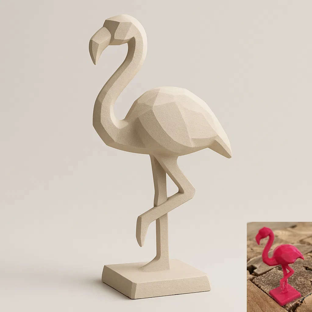 Chú hồng hạc 3D này là một tác phẩm điêu khắc tuyệt đẹp, được tạo ra bằng AI, hoàn hảo để trang trí nhà cửa hoặc bàn làm việc. Tải về ngay để mang vẻ đáng yêu và màu hồng ngọt ngào này vào không gian của bạn!
