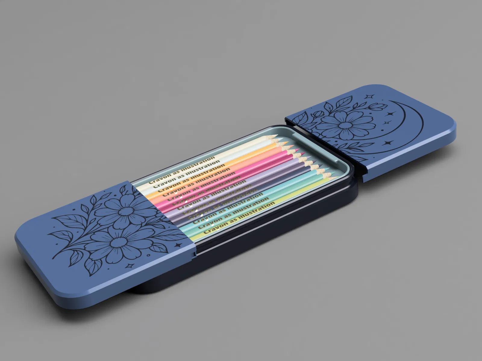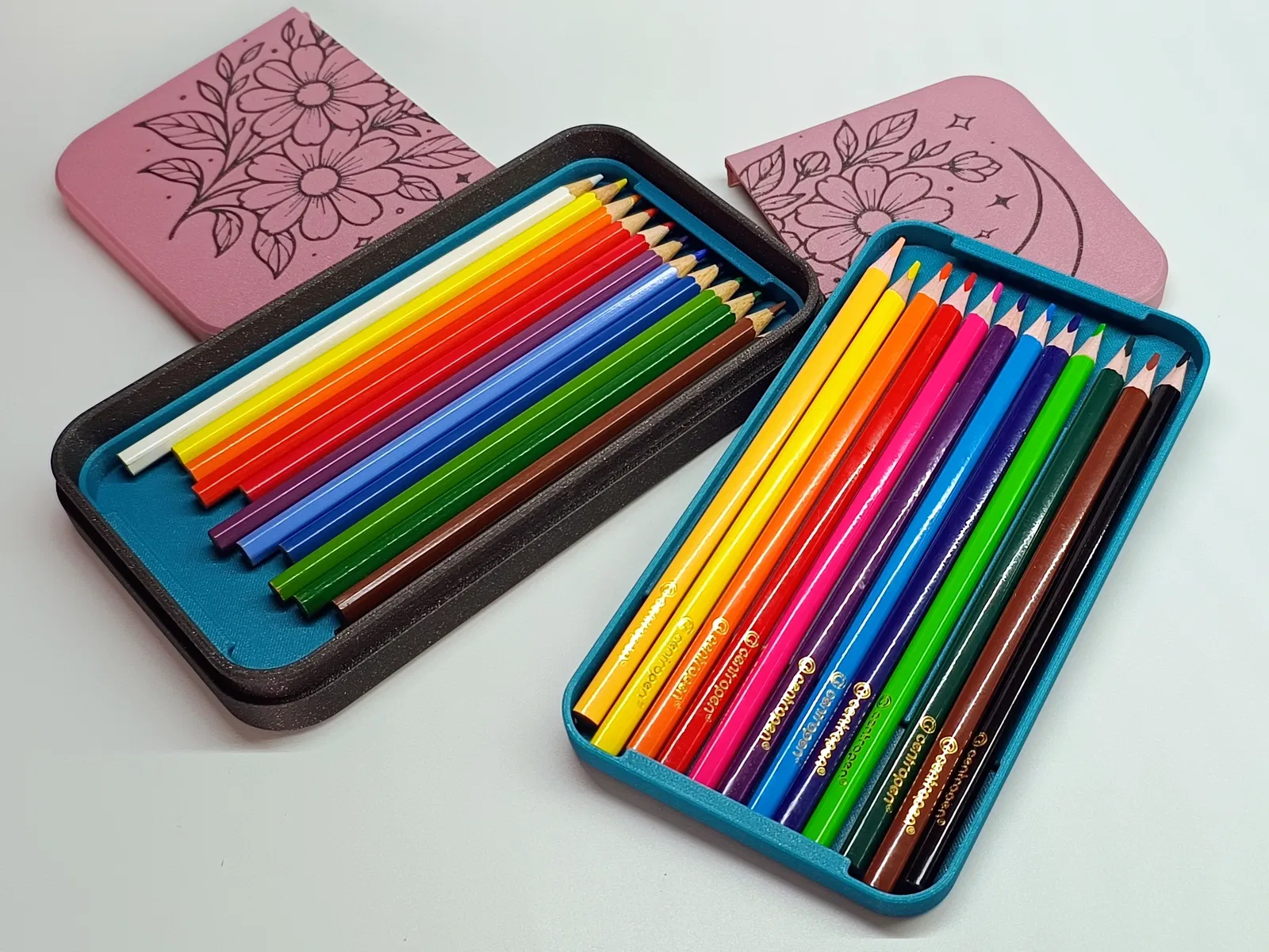 Cái hộp đựng bút xinh xắn này cất được tới 24 cây bút chì màu hoặc bút mực, có nắp trượt tiện lợi. Bạn còn có thể khắc tên hay hình ảnh tùy thích lên hộp nữa đó. In bằng PLA hoặc PETG là đẹp liền!