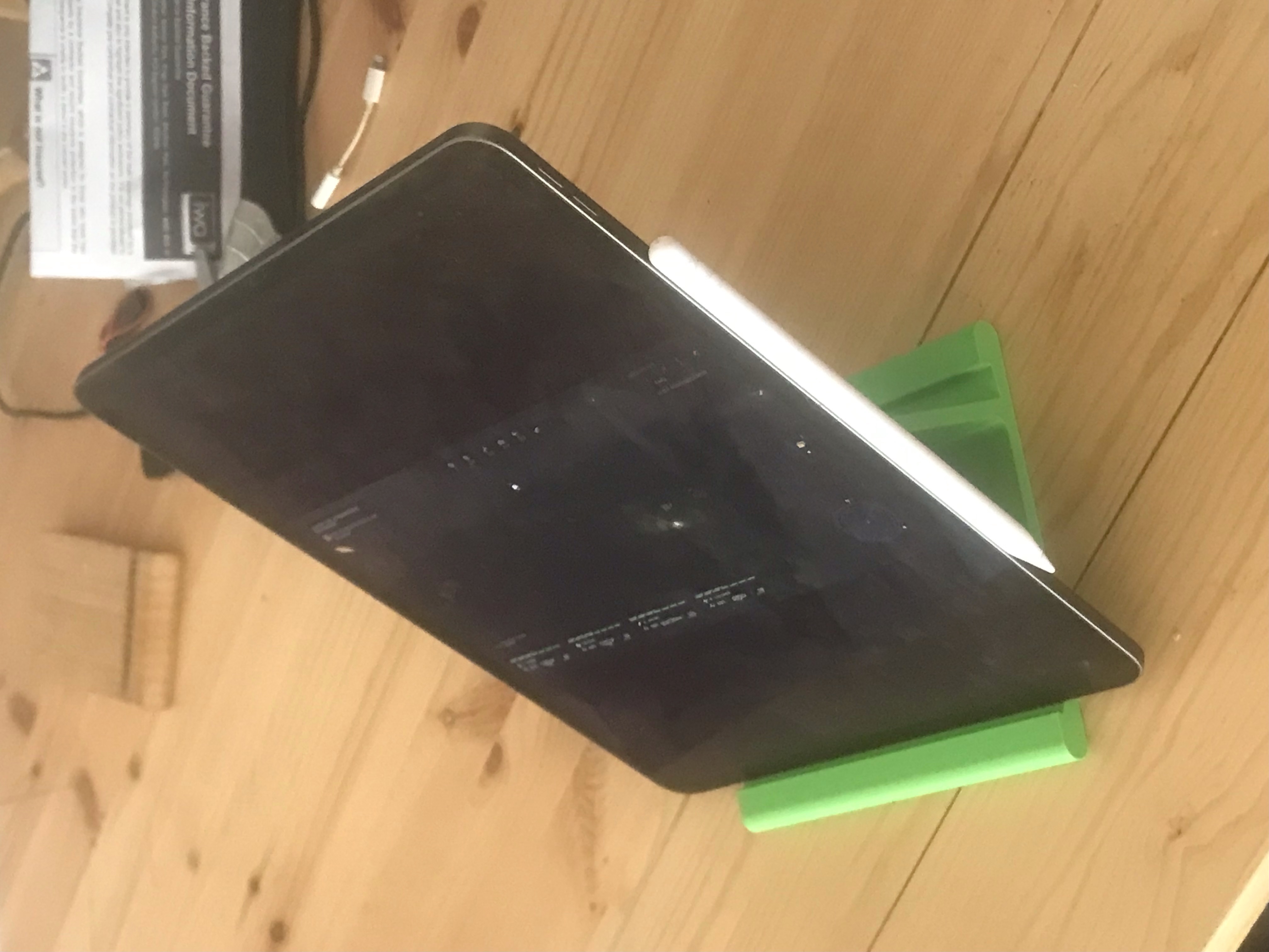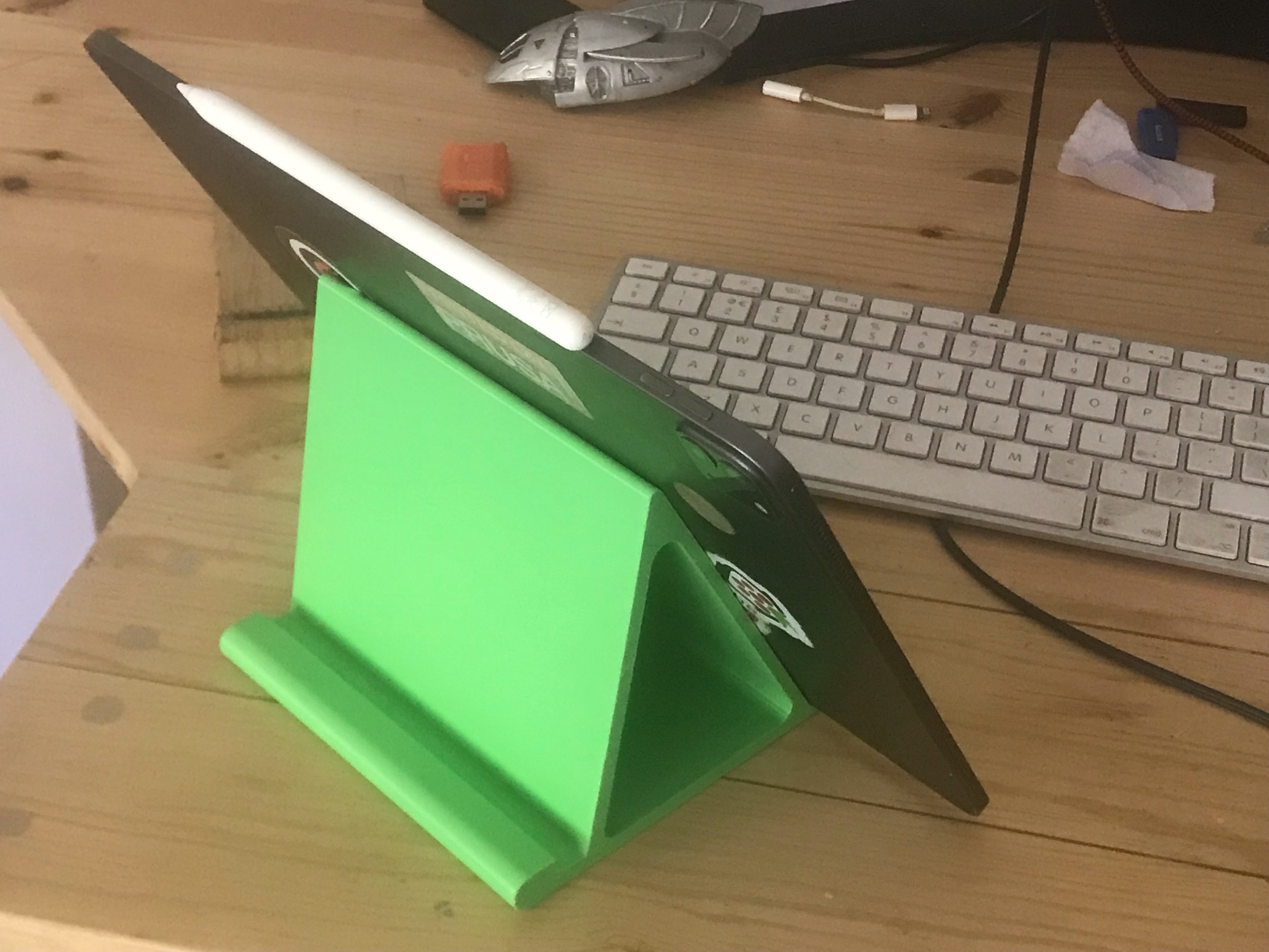 Cái đế này có thể giữ hầu hết các loại máy tính bảng hoặc điện thoại ở góc nghiêng 80 độ hoặc 60 độ. In bằng PLA hoặc PTEG, không cần support. Hoạt động tốt với iPad Pro 12.9" và các thiết bị dày hơn.